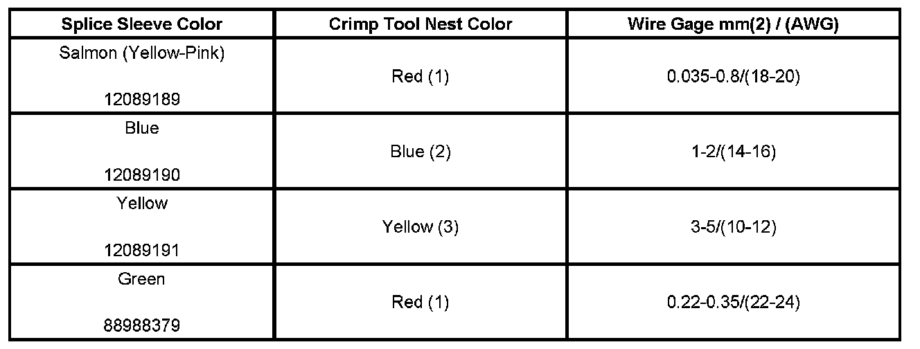 4. Select the proper DuraSeal splice sleeve according to the wire size. Refer to the above table at the beginning of the repair procedure for the color coding of the DuraSeal splice sleeves and the crimp tool nests.