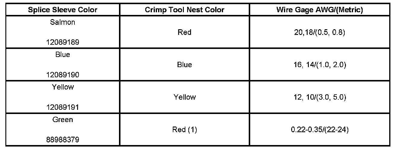 5. Select the proper duraseal splice sleeve (2) and the required crimp nest tool. Refer to the Crimp and Seal Splice Table.