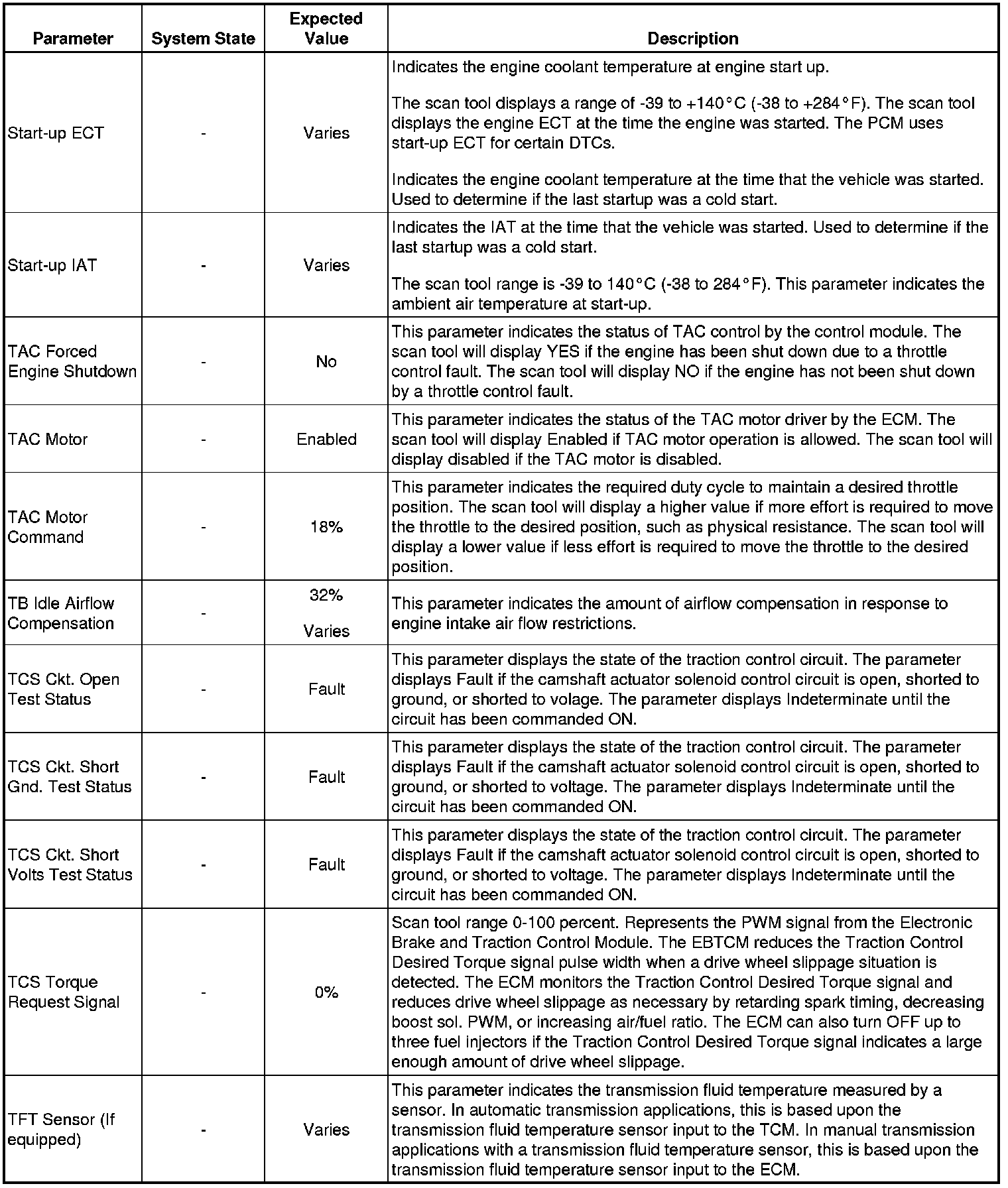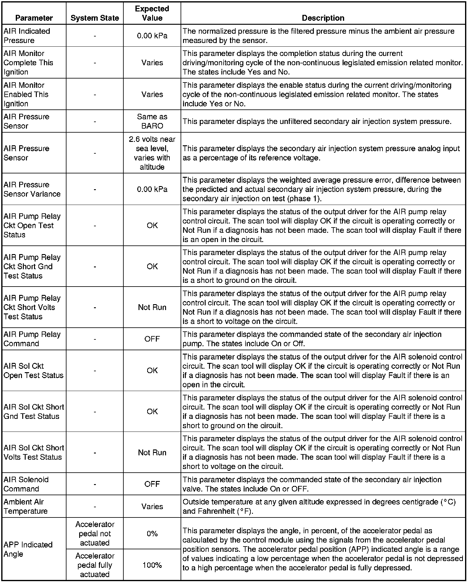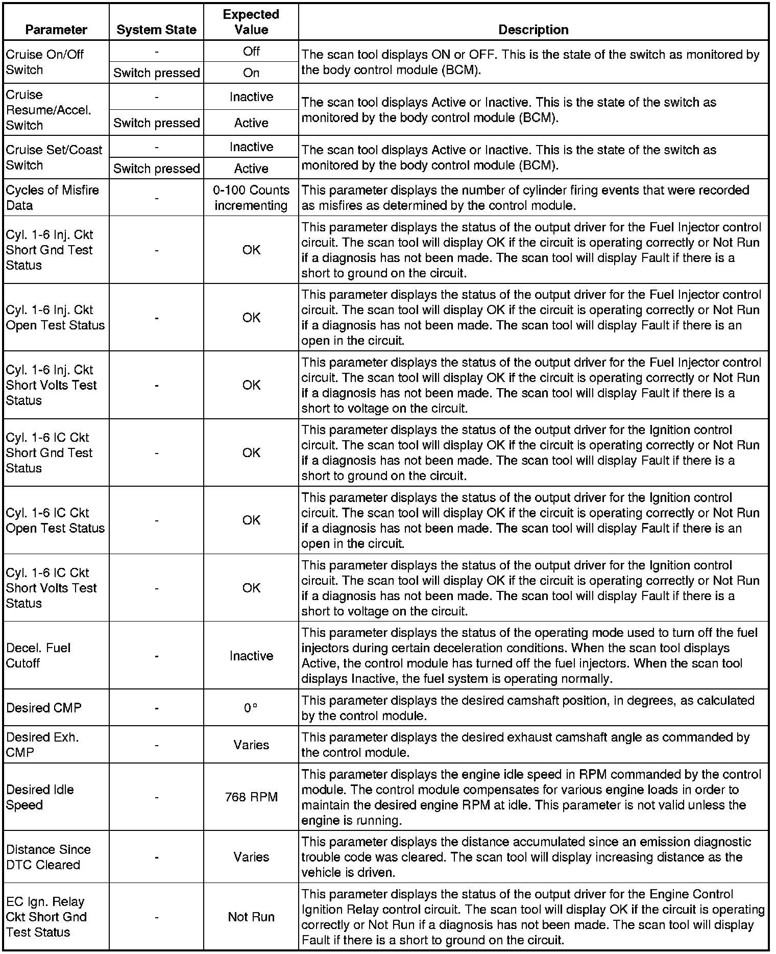 The Engine Control Module Scan Tool Data List contains all engine-related parameters that are available on the scan tool. The list is arranged in alphabetical order. A given parameter may appear in any one of the data lists, and in some cases may appear more than once, or in more than one data list in order to group certain related parameters together.