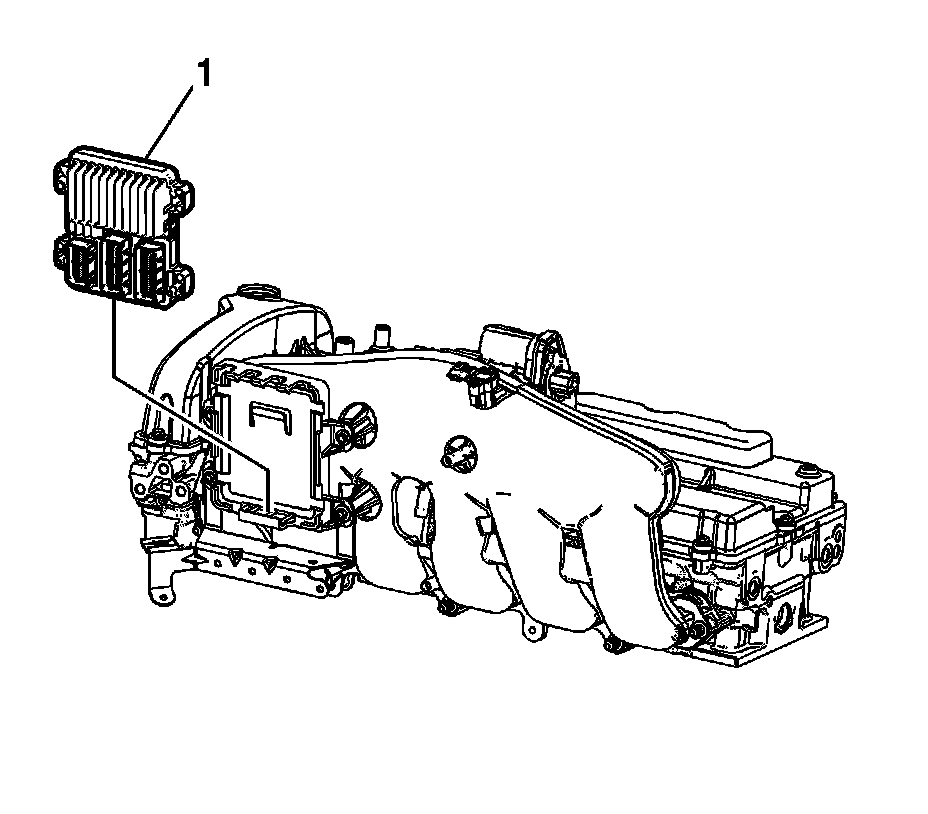 1. Install the ECM and bracket assembly (3) to the studs on the intake manifold.