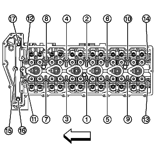 CYLINDER HEAD BOLTSThis component uses torque-to-yield bolts. When servicing this component do not reuse the bolts, New torque-to-yield bolts must be installed. Reusing used torque-to-yield bolts will not provide proper bolt torque and clamp load. Failure to install NEW torque-to-yield bolts may lead to engine damage.