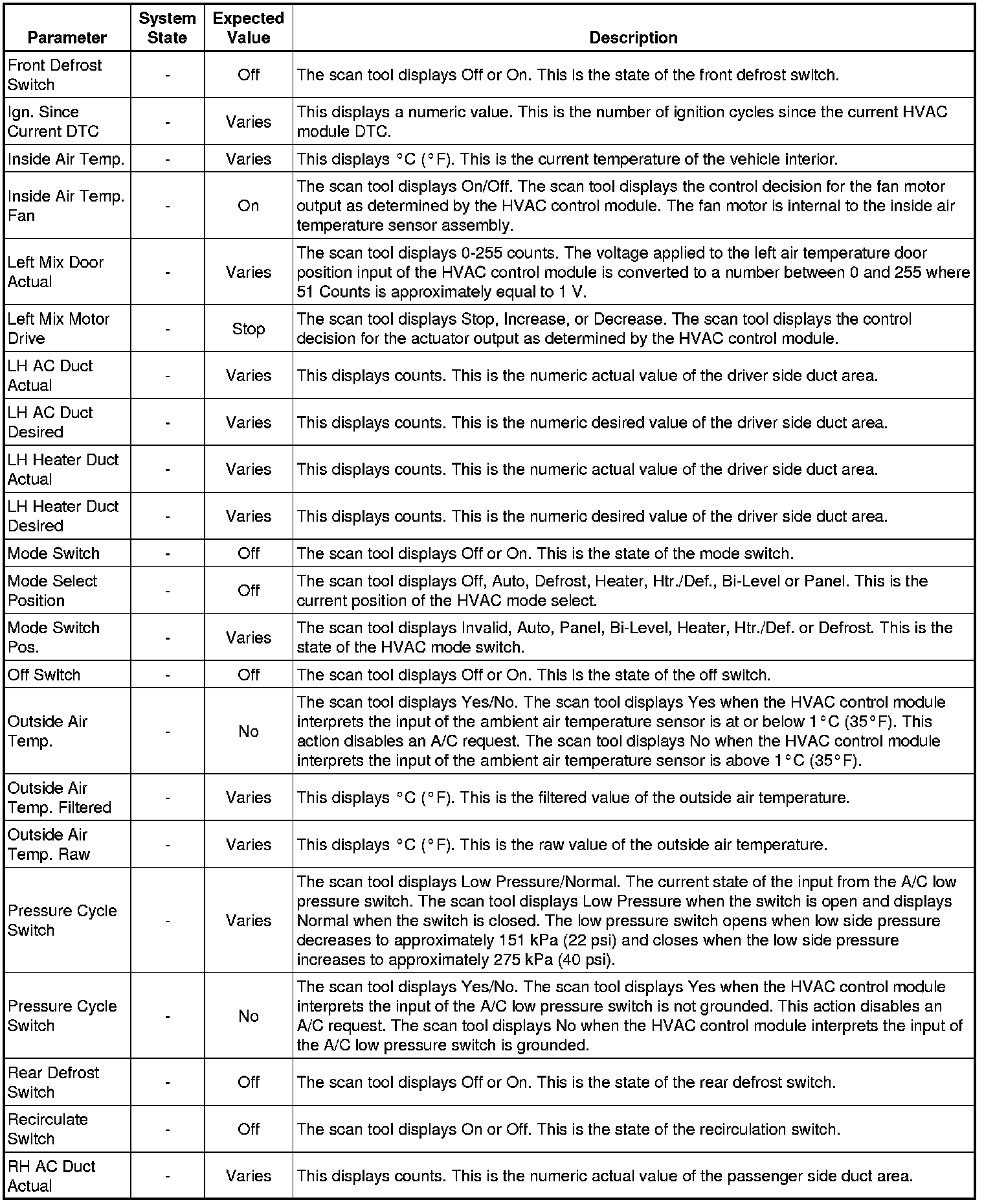 Heating, Ventilation and Air Conditioning Control Module Scan Tool Information
