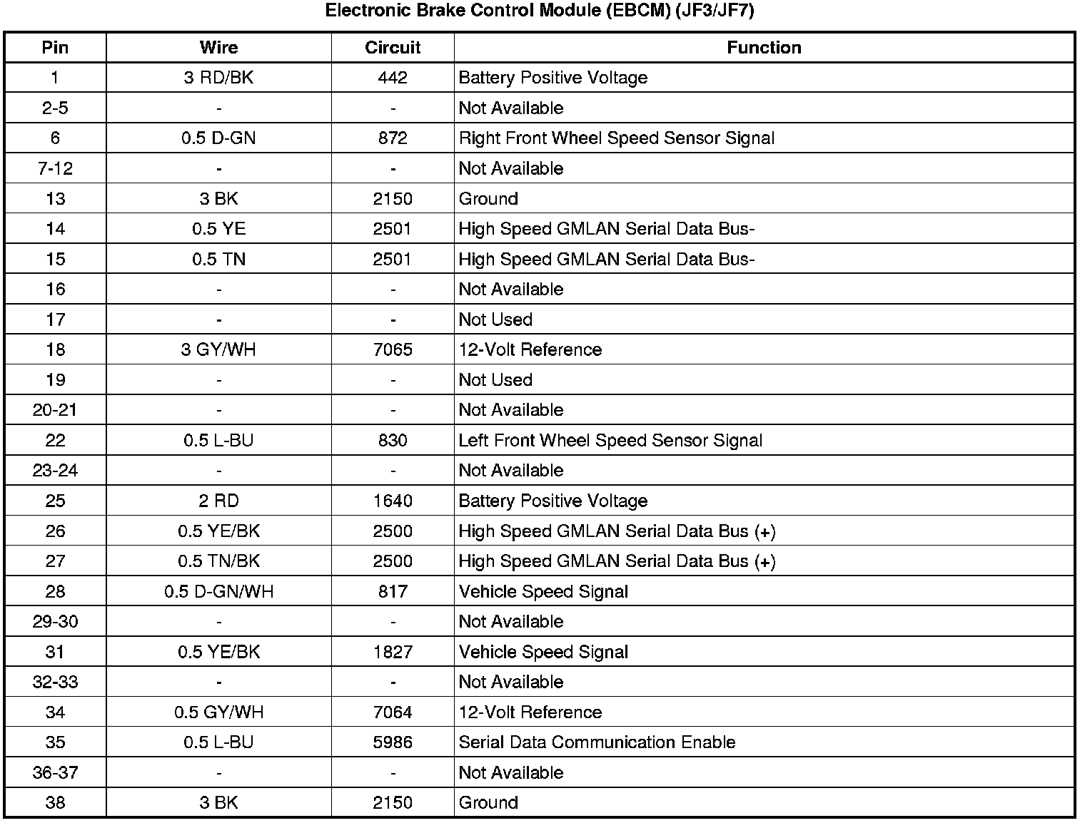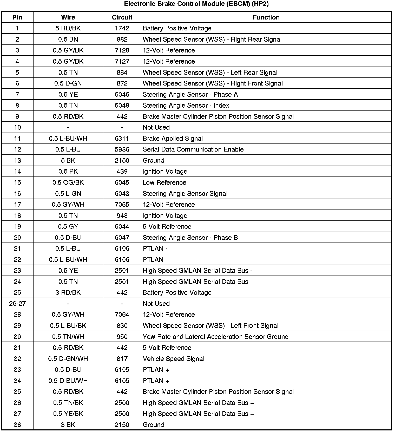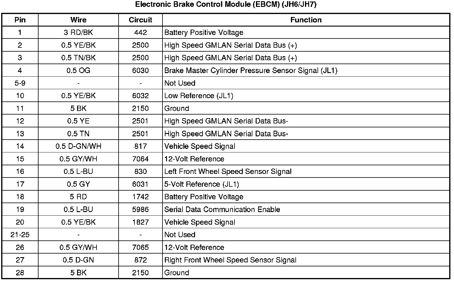 Home >> GMC >> 2009 >> Sierra Denali AWD V8-6.2L >> Repair and Diagnosis >> Diagrams >> Connector Views >> Electronic Brake Control Module