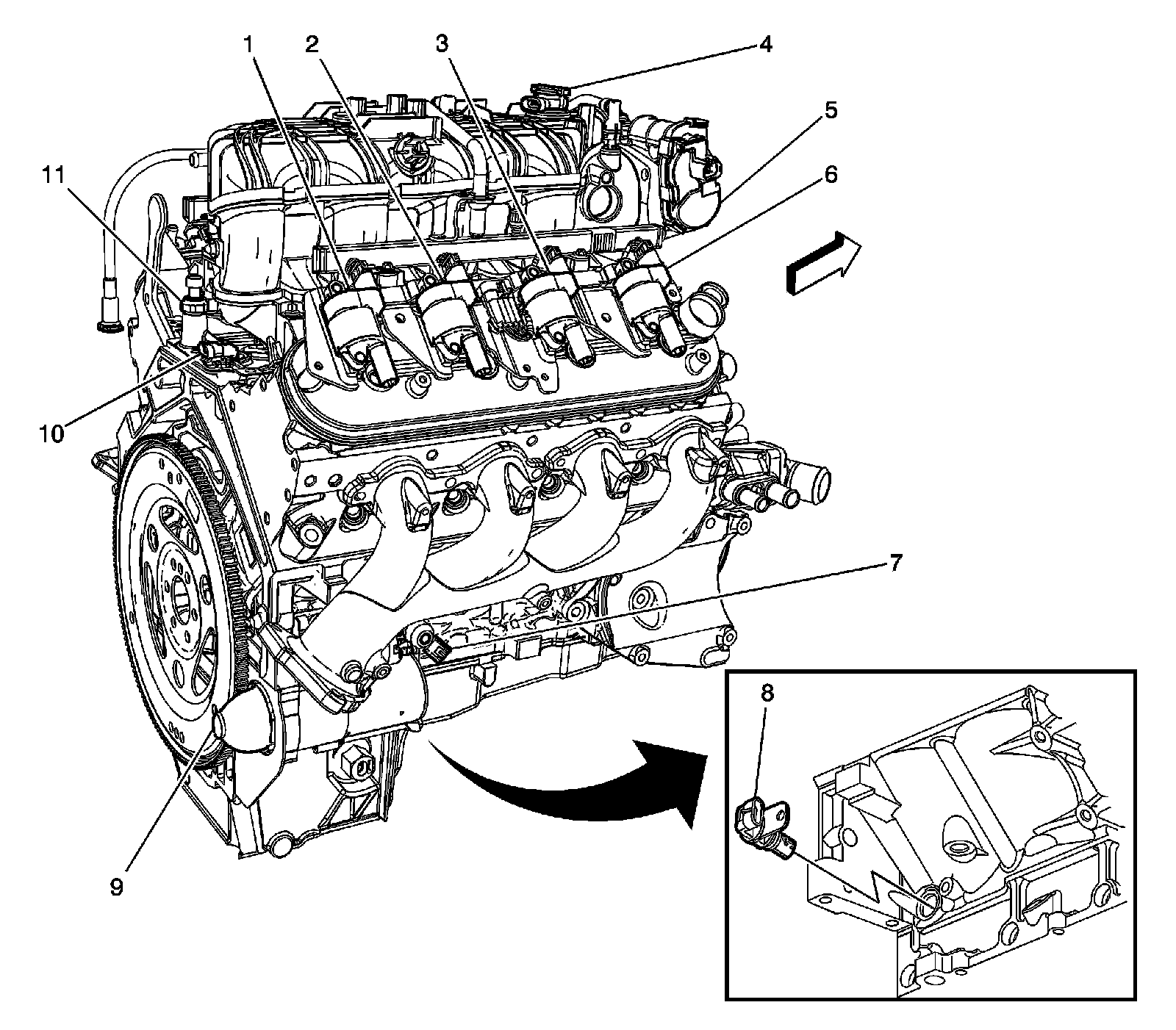 Right Side of the Engine Components (4.8L/5.3L/6.0L/6.2L except LFA/HP2)