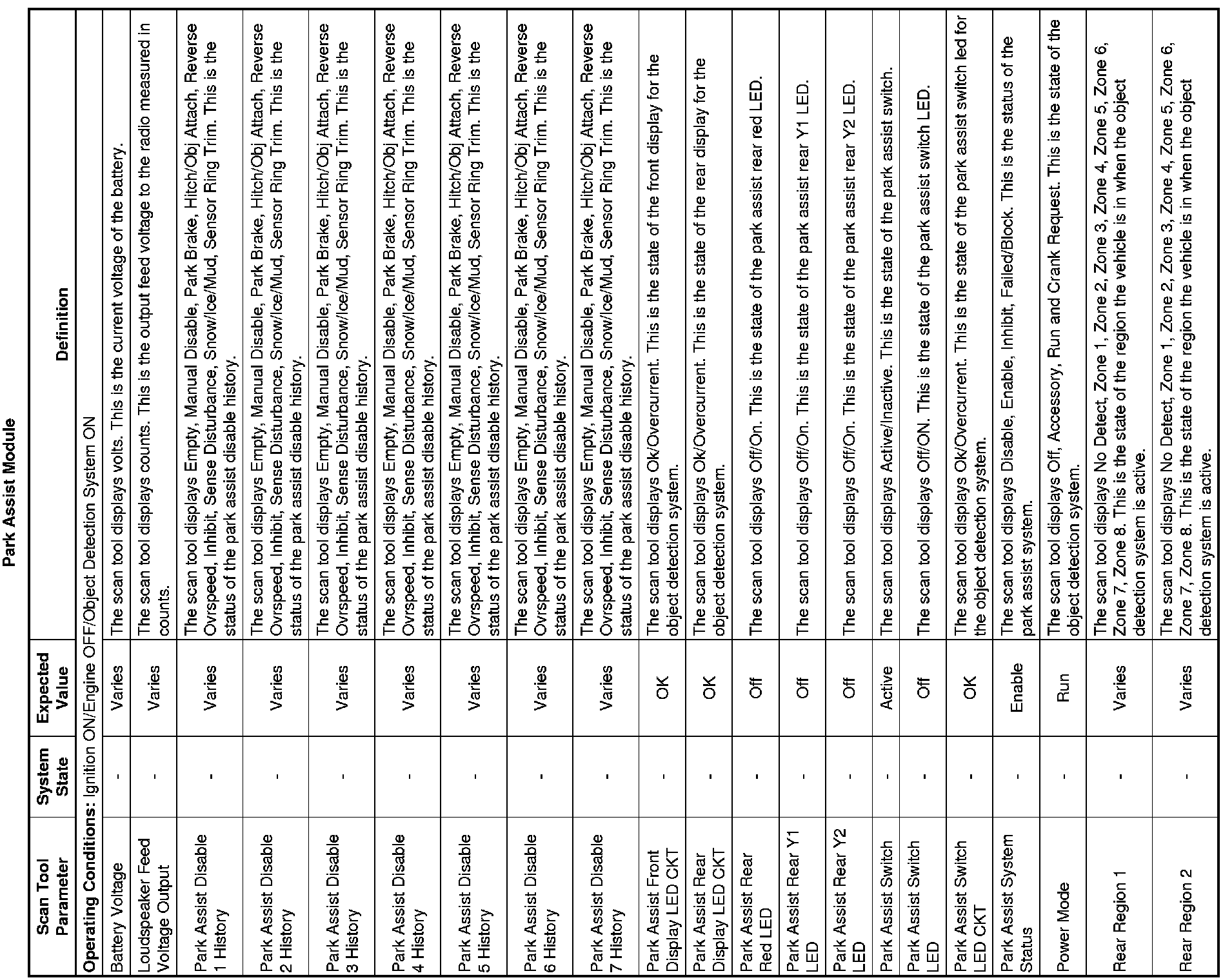 Rear Object Alarm Module Scan Tool Information