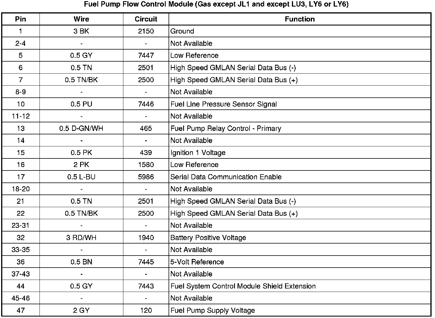 Fuel Pump Flow Control Module (Gas except JL1 and except LU3, LY6 or LY6)