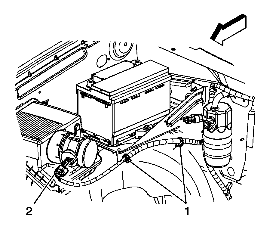 Note: The embossed arrow on the MAF/IAT sensor indicates the proper air flow direction. The arrow must point toward the engine.