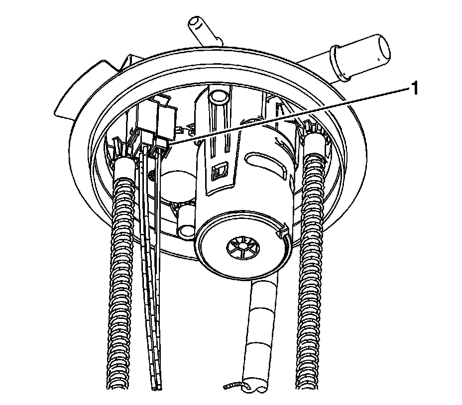 2. Disconnect the fuel level sensor wiring pigtail electrical connector (1) from the module cover.