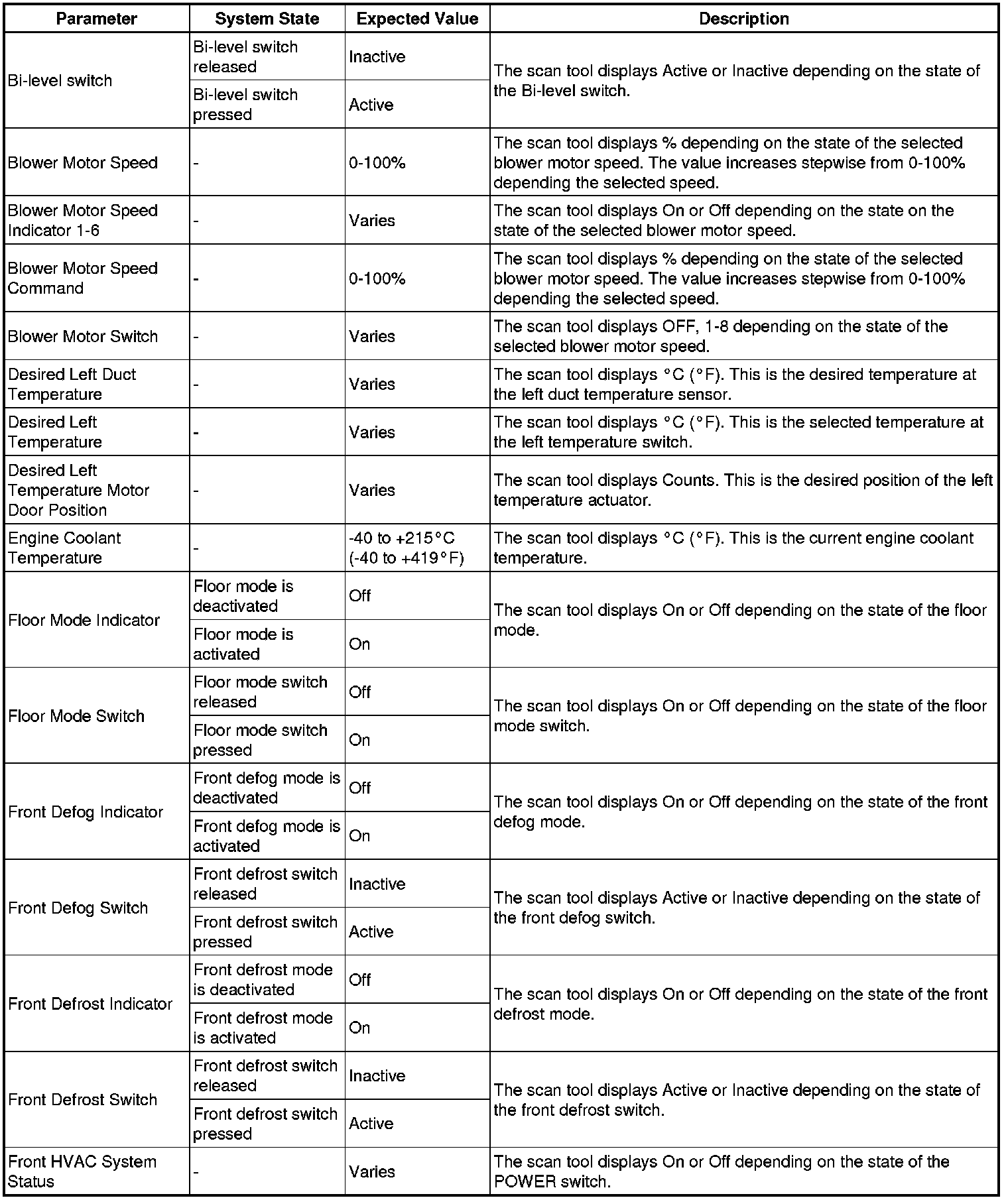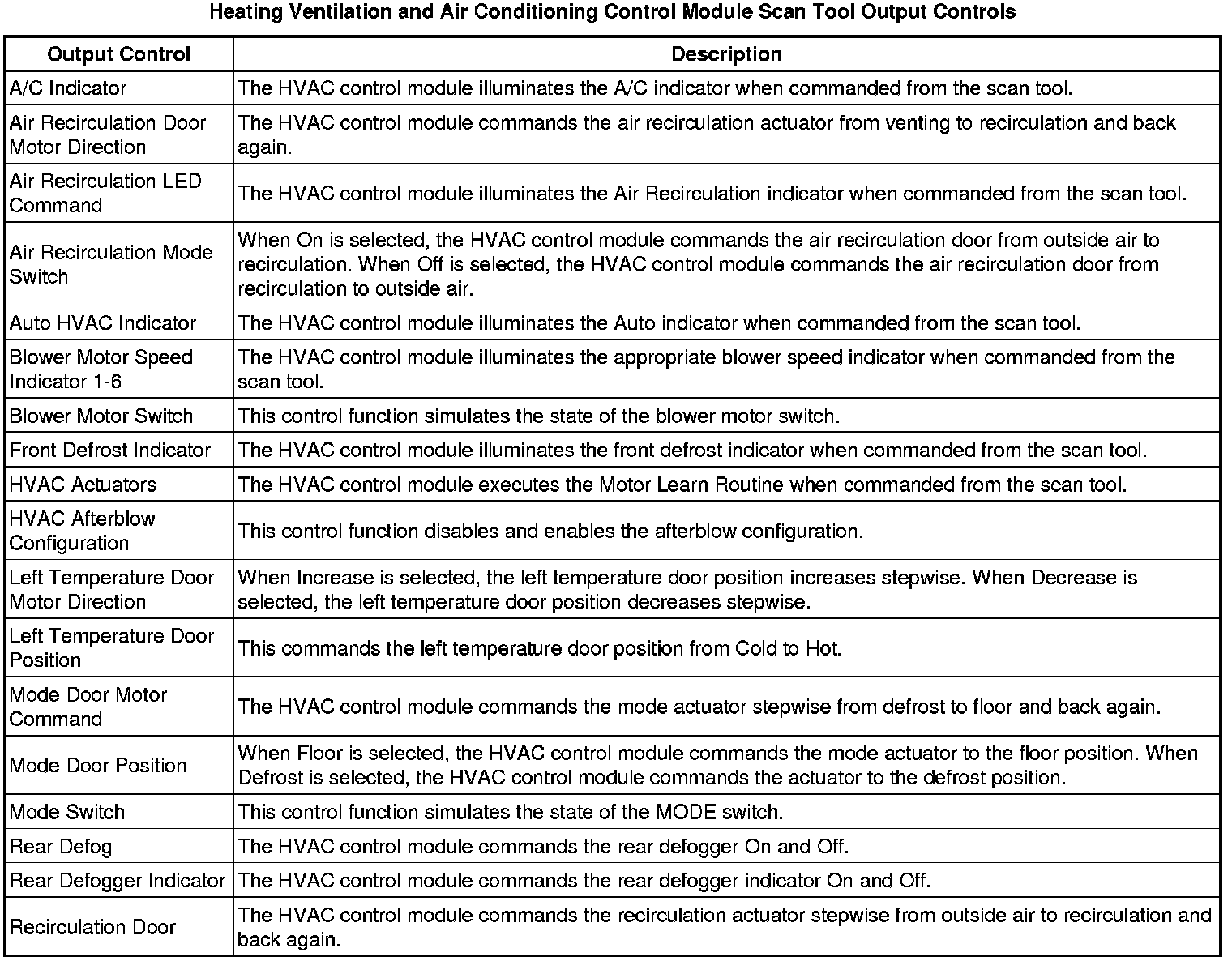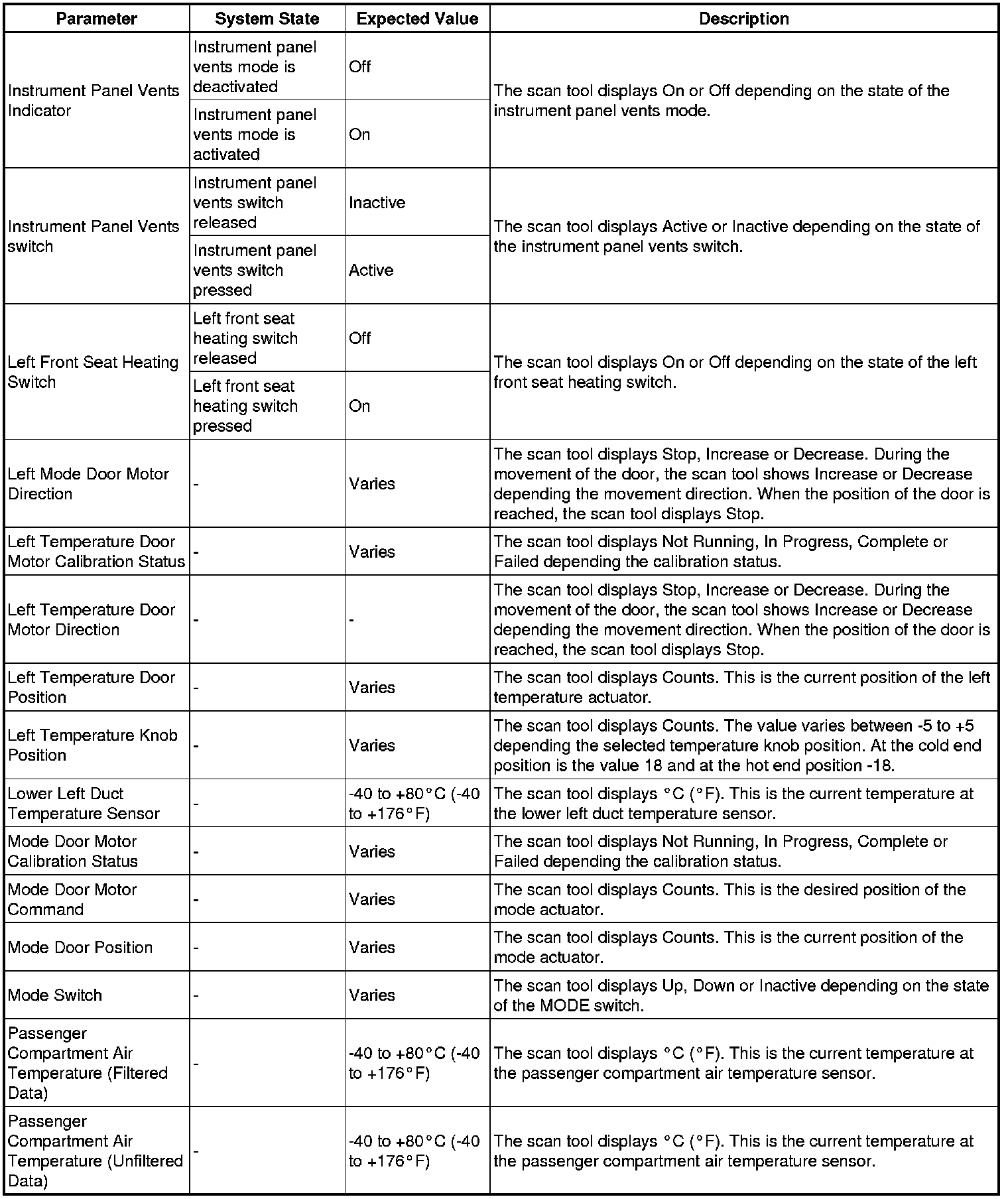 Heating, Ventilation and Air Conditioning Control Module Scan Tool Information
