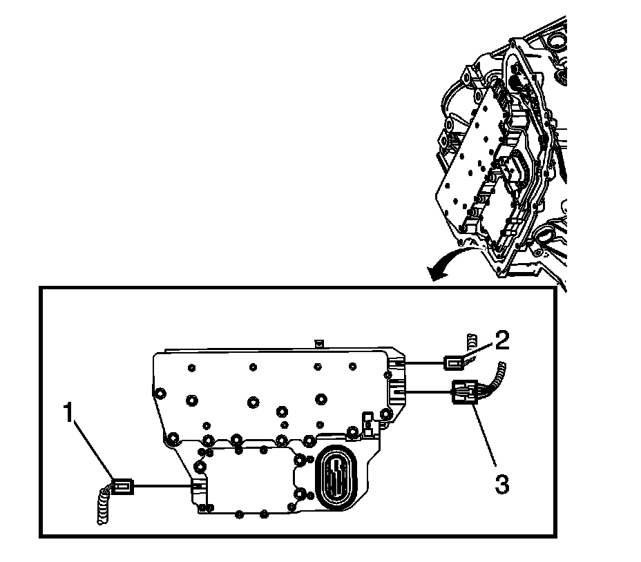 1. Remove the transmission control valve body cover. Refer to Control Valve Body Cover Replacement (Control Valve Body Cover Replacement).