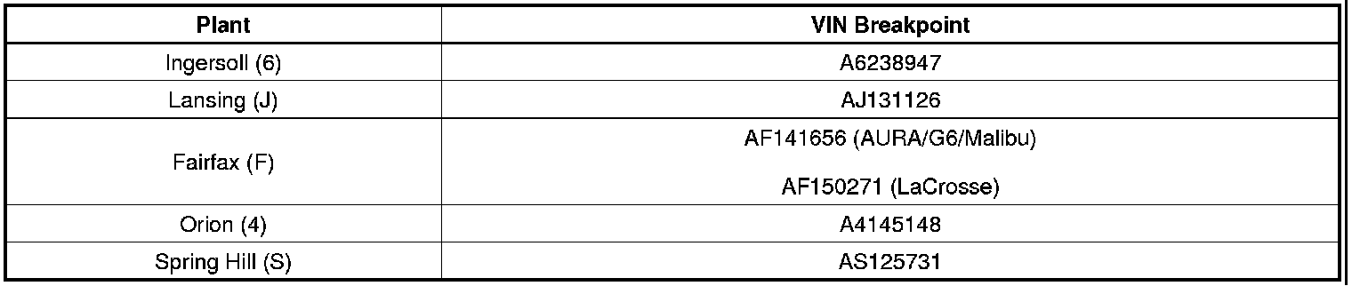 All Vehicles Built Prior to the Following VIN Breakpoints: