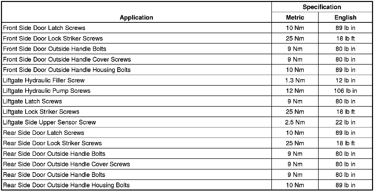 Fastener Tightening Specifications