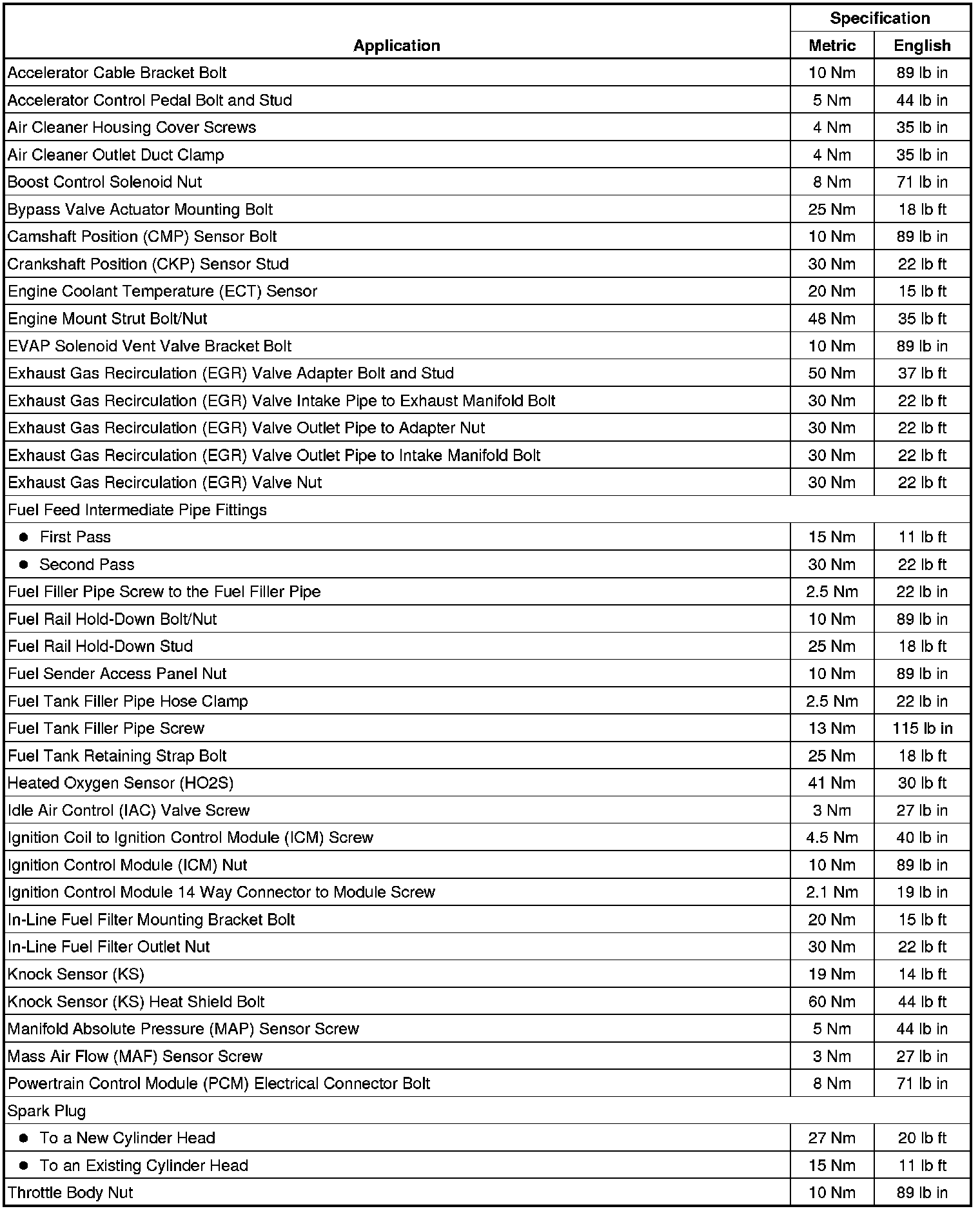 Fastener Tightening Specifications