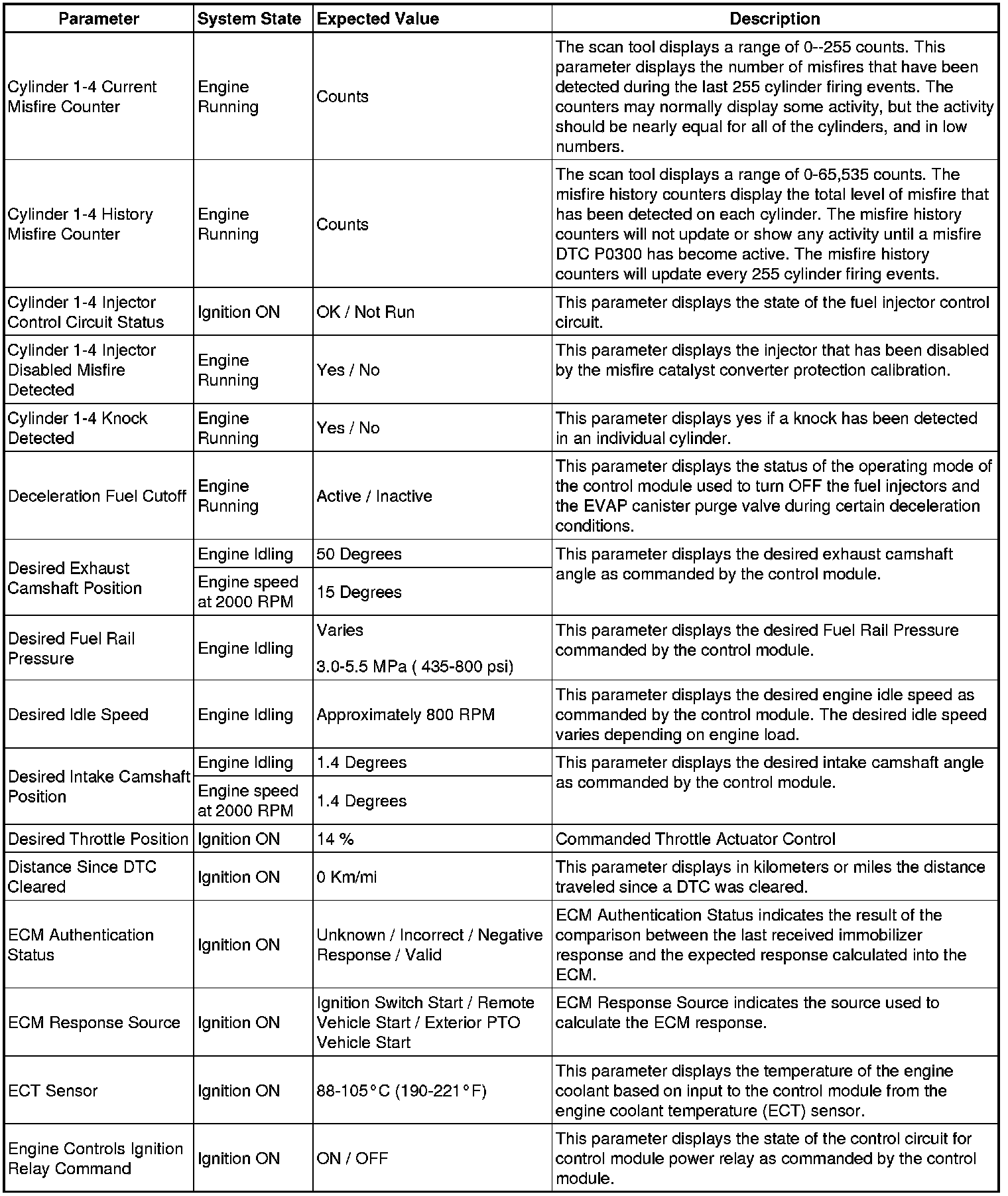 The Engine Control Module Scan Tool Data List contains all engine-related parameters that are available on the scan tool. The list is arranged in alphabetical order. A given parameter may appear in any one of the data lists, and in some cases may appear more than once, or in more than one data list in order to group certain related parameters together.