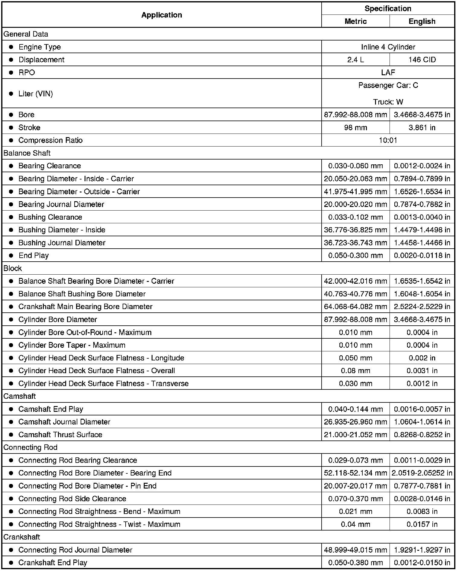 Engine Mechanical Specifications