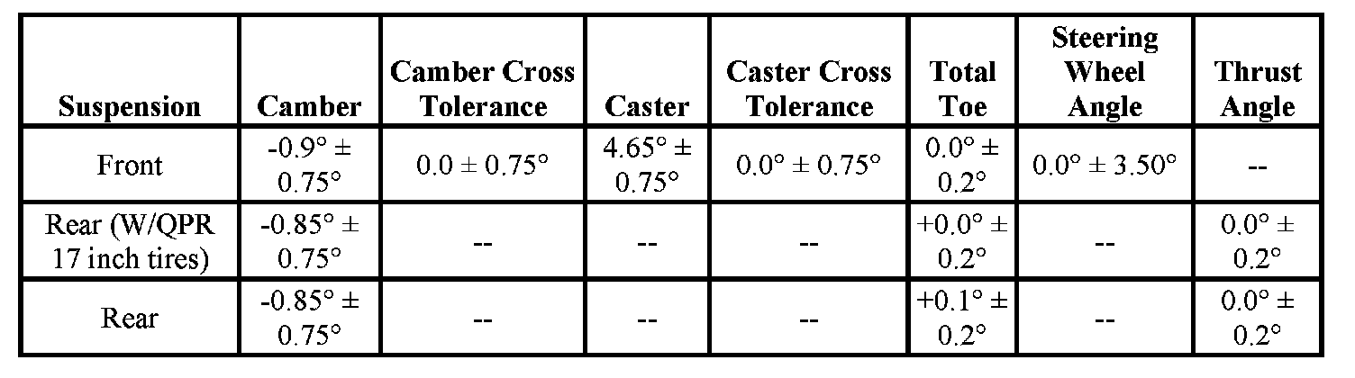 Wheel Alignment Specifications