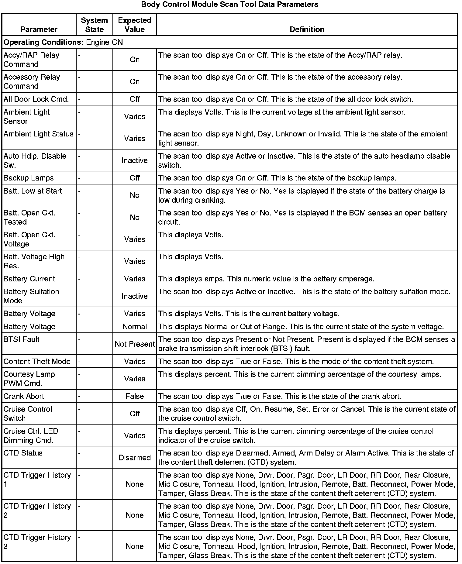 Body Control Module Scan Tool Information