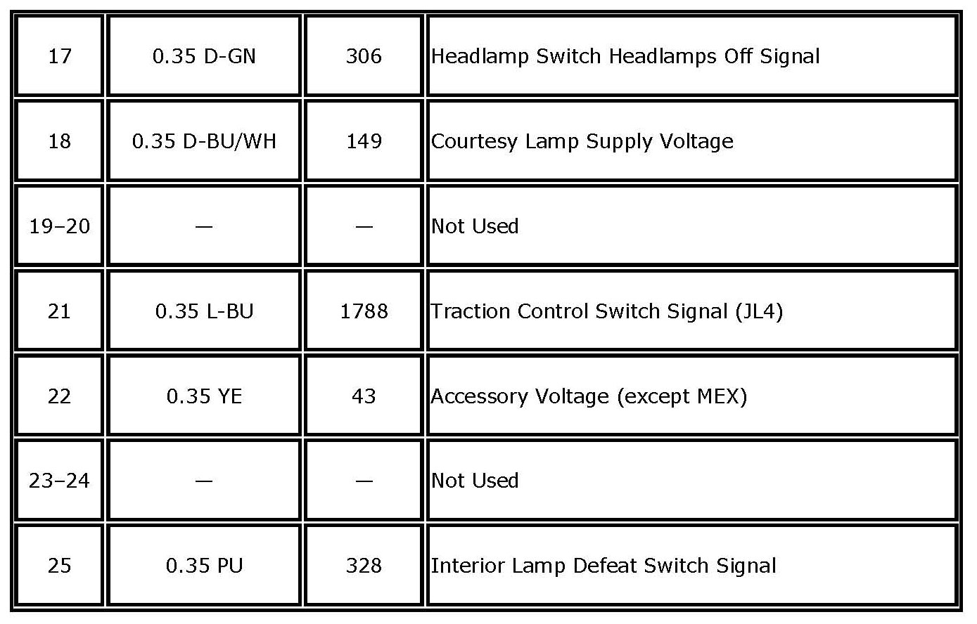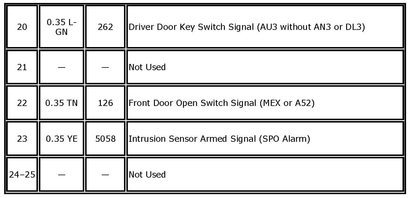Body Control Module (BCM) X7 (except MEXICO or RPO A52)