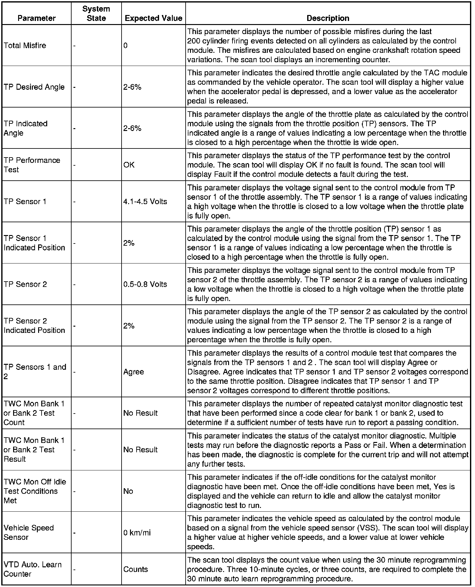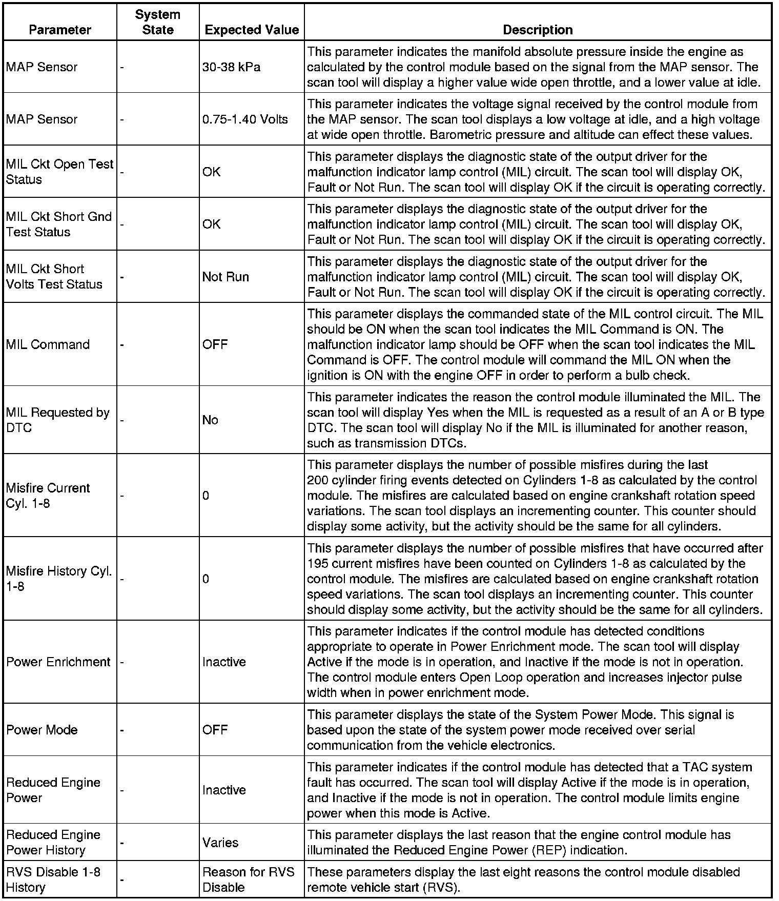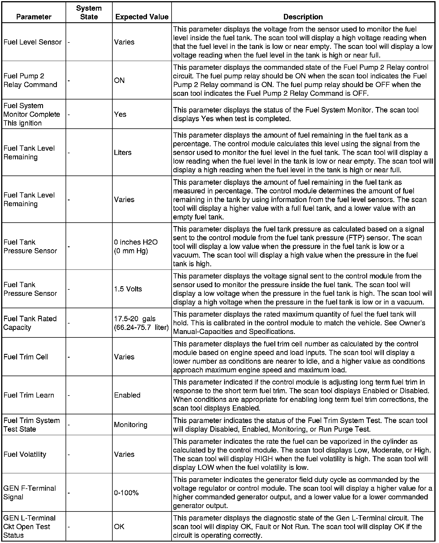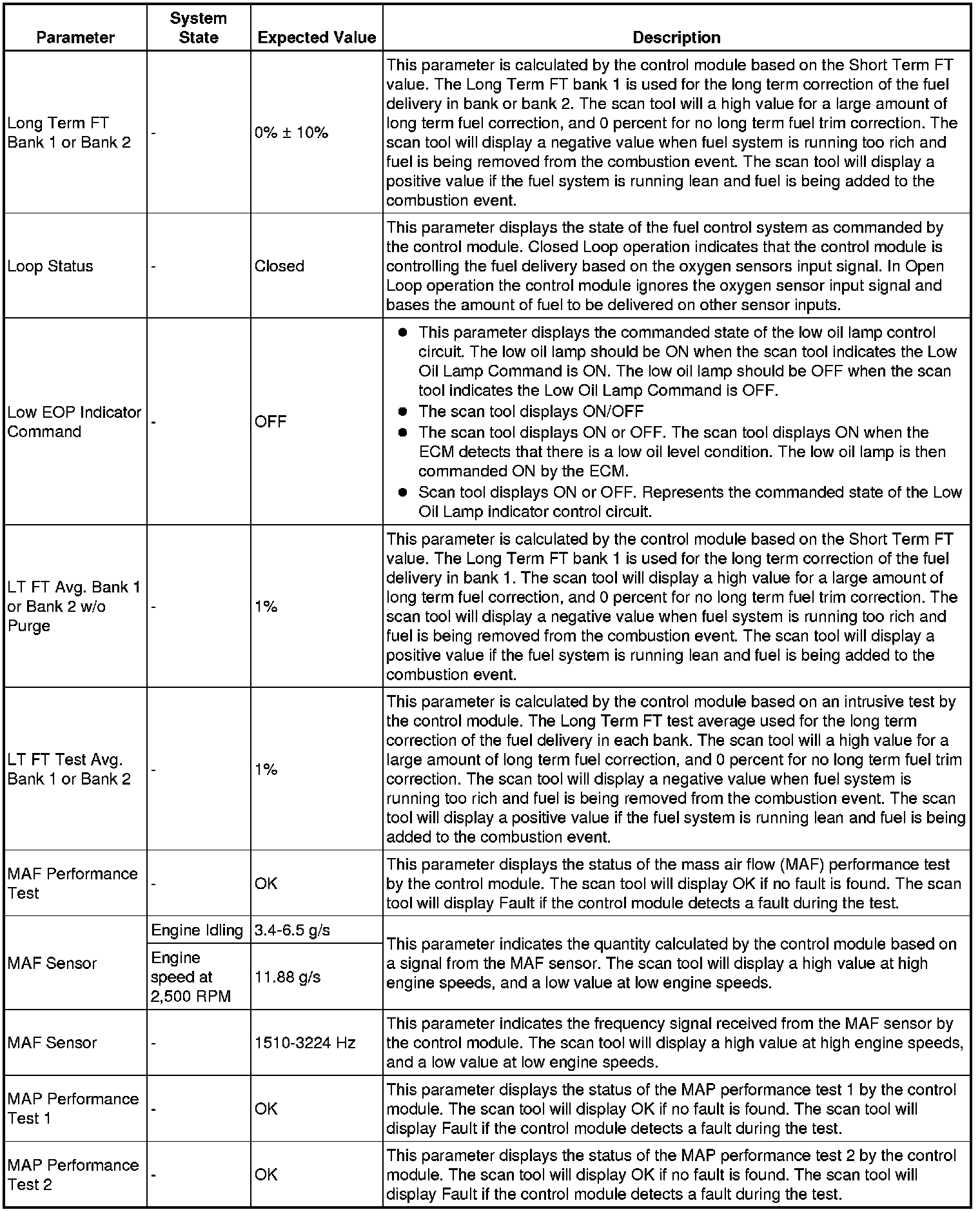 The scan tool values from a properly running engine may be used for comparison with the engine you are diagnosing. The engine scan tool data list represents values that would be seen on a normally running engine.