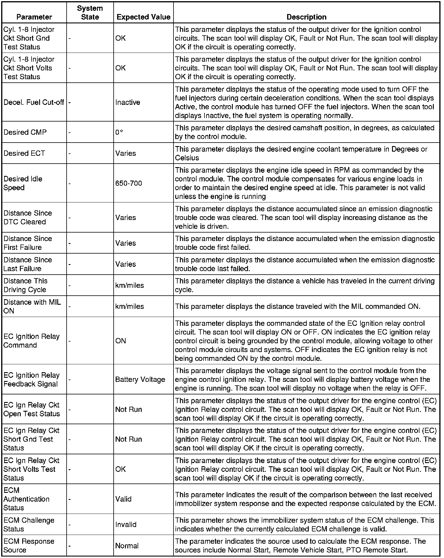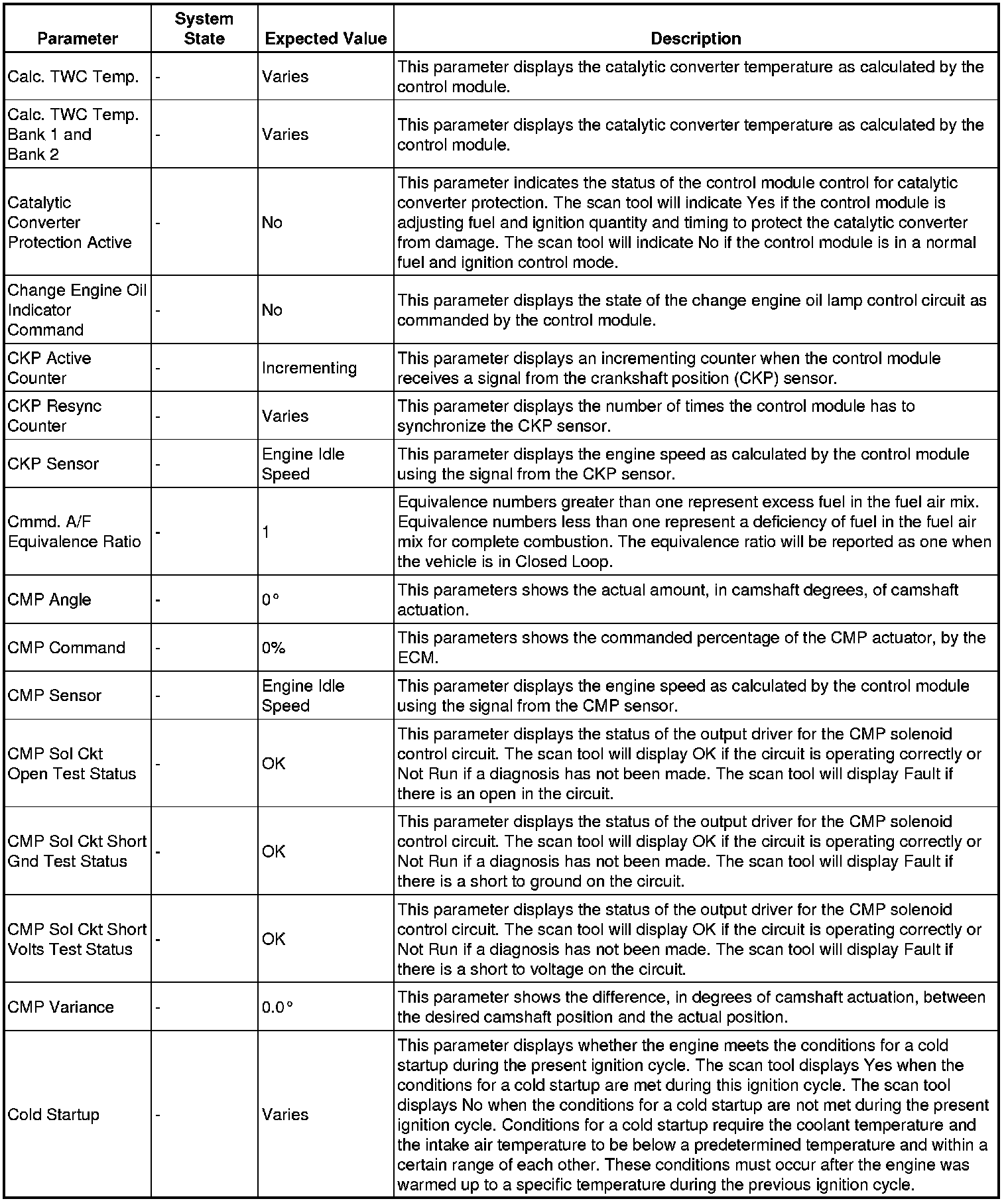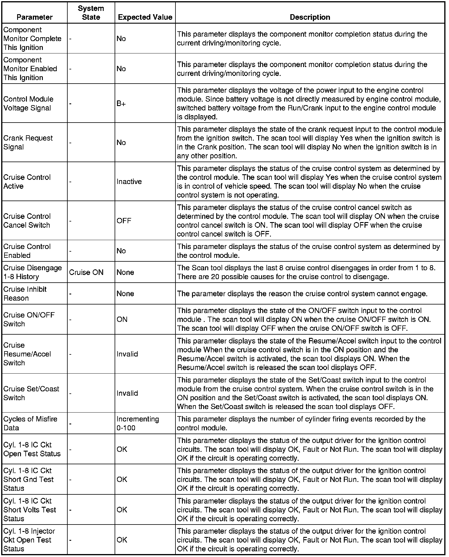 The Engine Control Module Scan Tool Data List contains all engine-related parameters that are available on the scan tool. The list is arranged in alphabetical order. A given parameter may appear in any one of the data lists, and in some cases may appear more than once, or in more than one data list in order to group certain related parameters together.