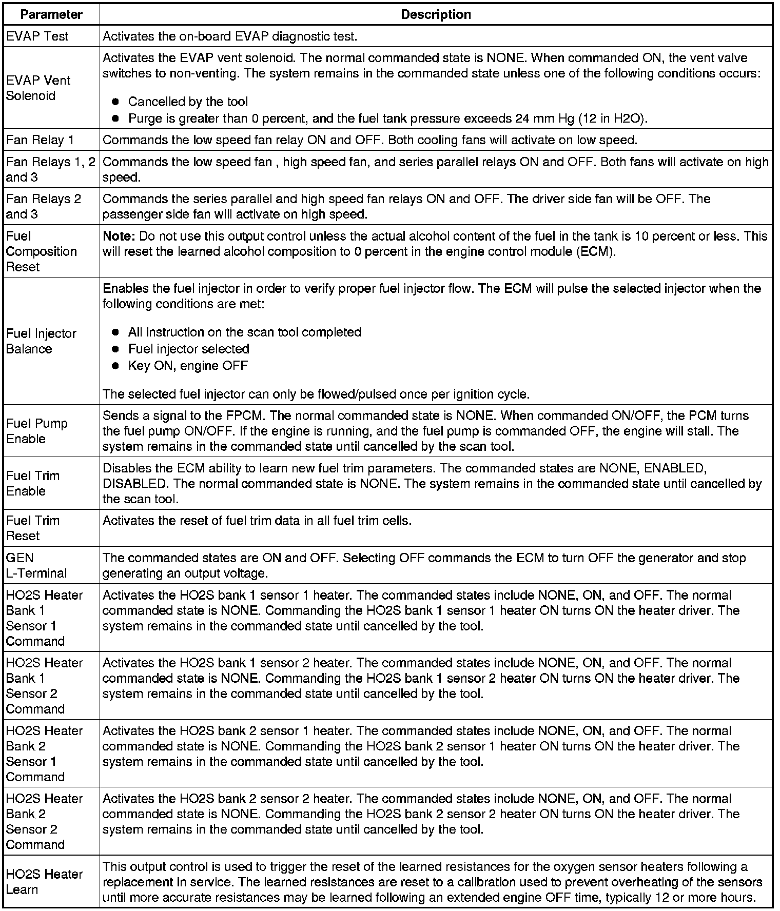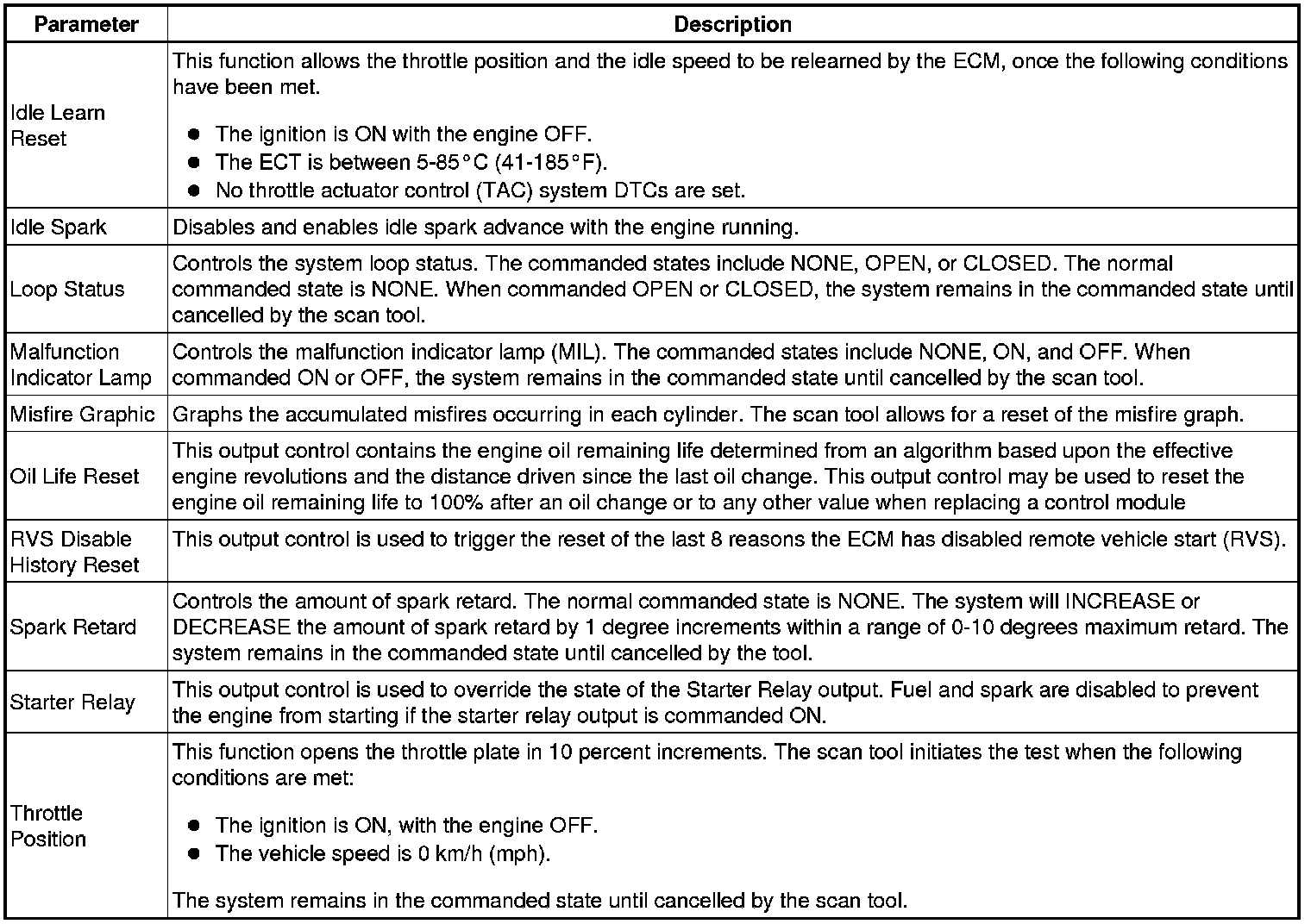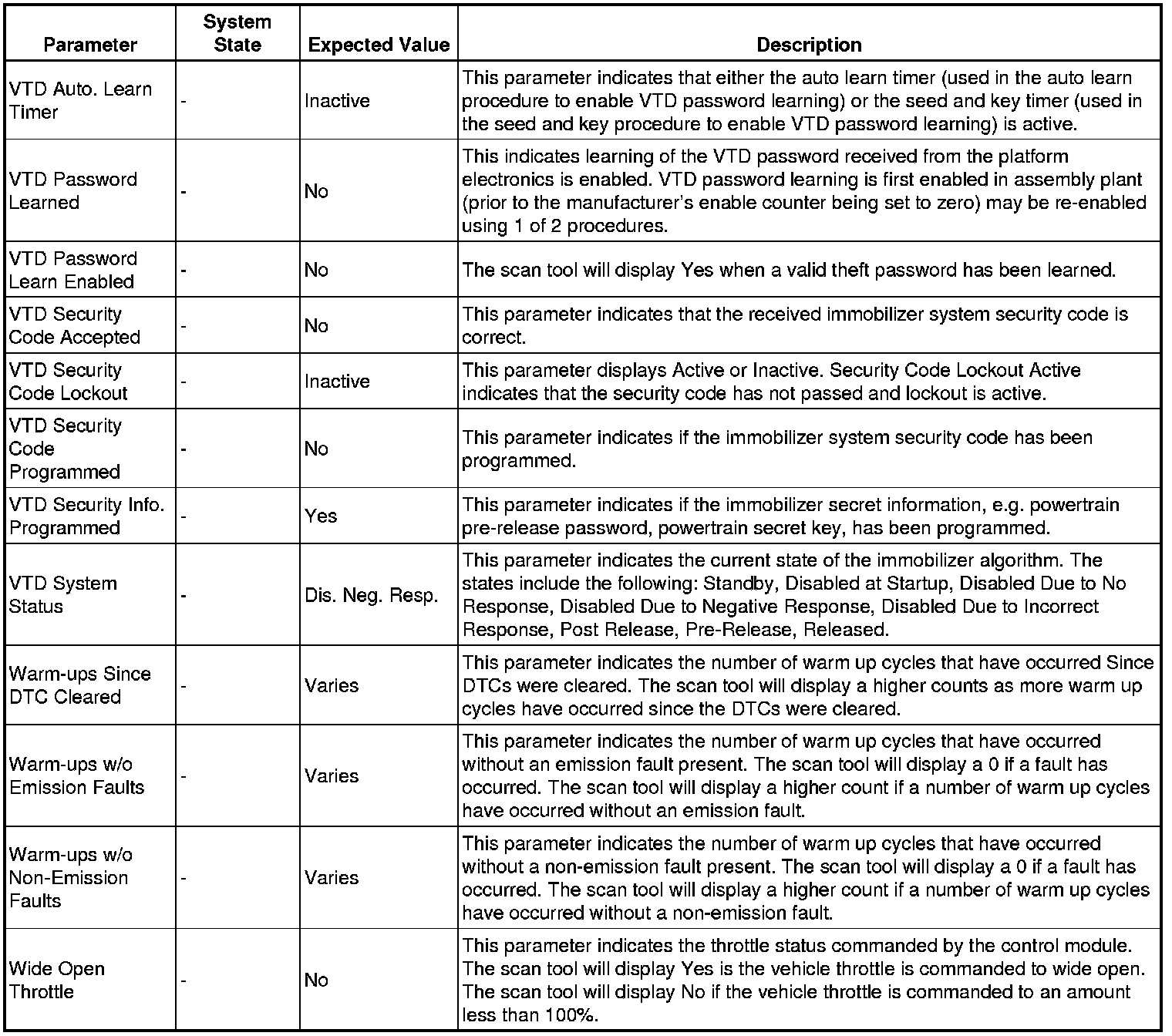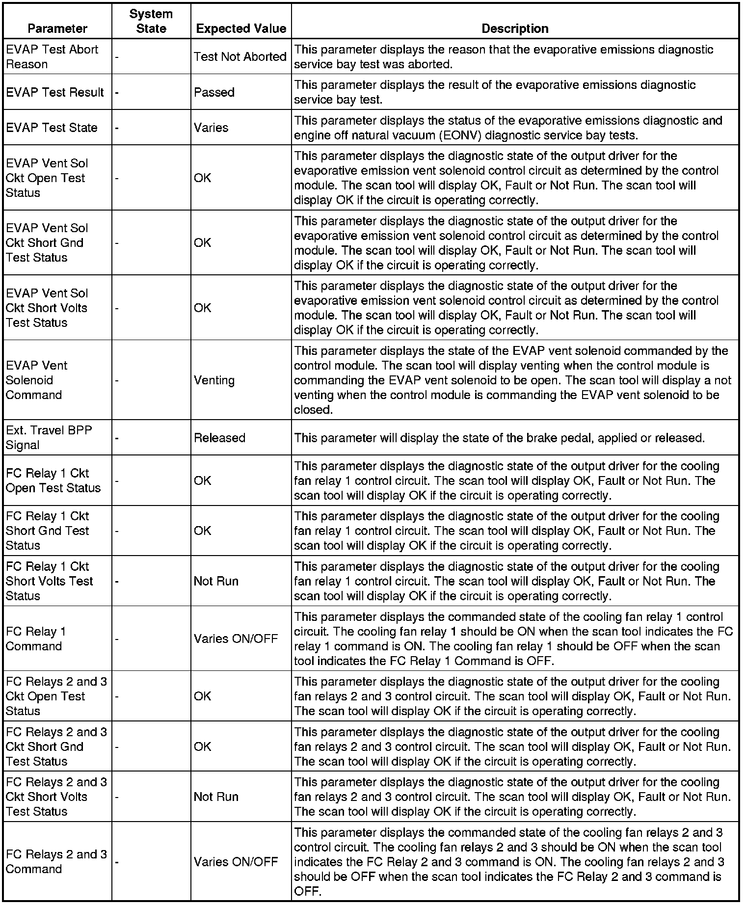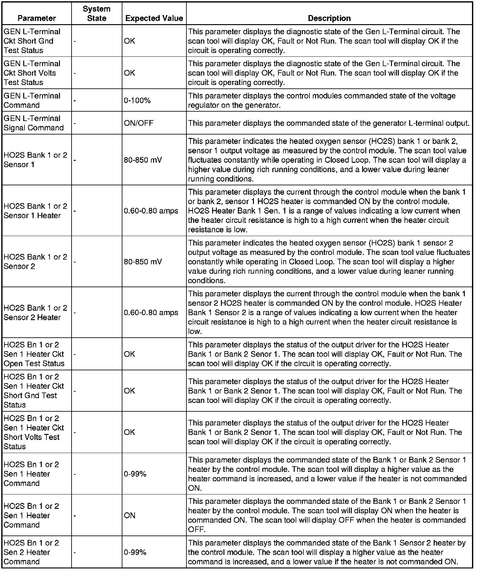 Only the parameters listed below are referenced in this service manual for use in diagnosis.