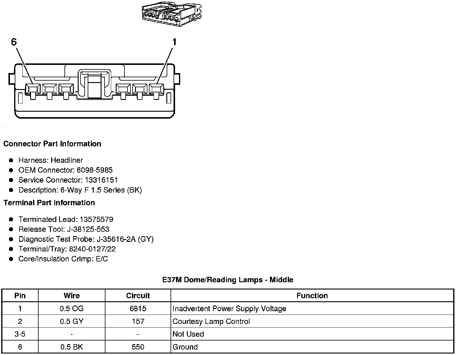 E37EL Dome/Reading Lamps - Front Overhead Console Left