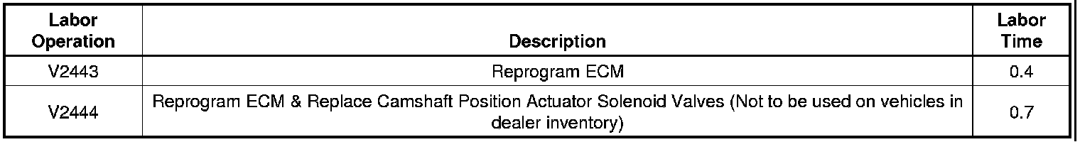 Reminder: Vehicles that have been delivered to customers MUST have the camshaft position actuator solenoid valves replaced, in addition to reprogramming the ECM. Please discard all copies of bulletin 11195A, issued August 2011.