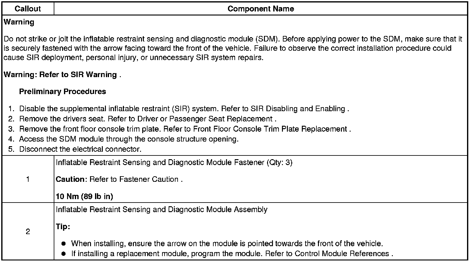 Inflatable Restraint Sensing and Diagnostic Module Replacement