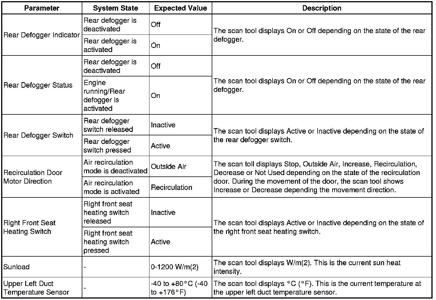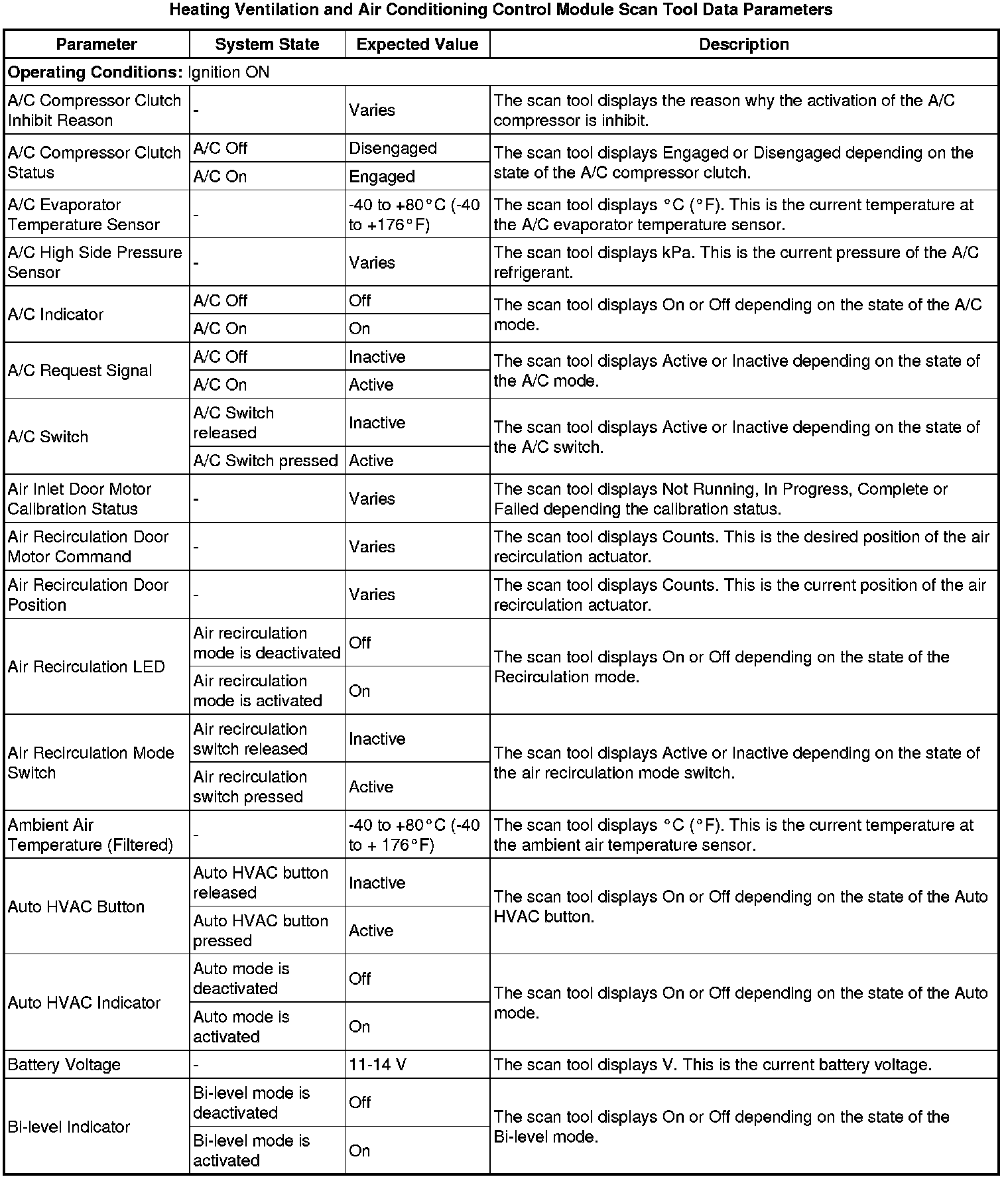 Heating, Ventilation and Air Conditioning Control Module Scan Tool Information