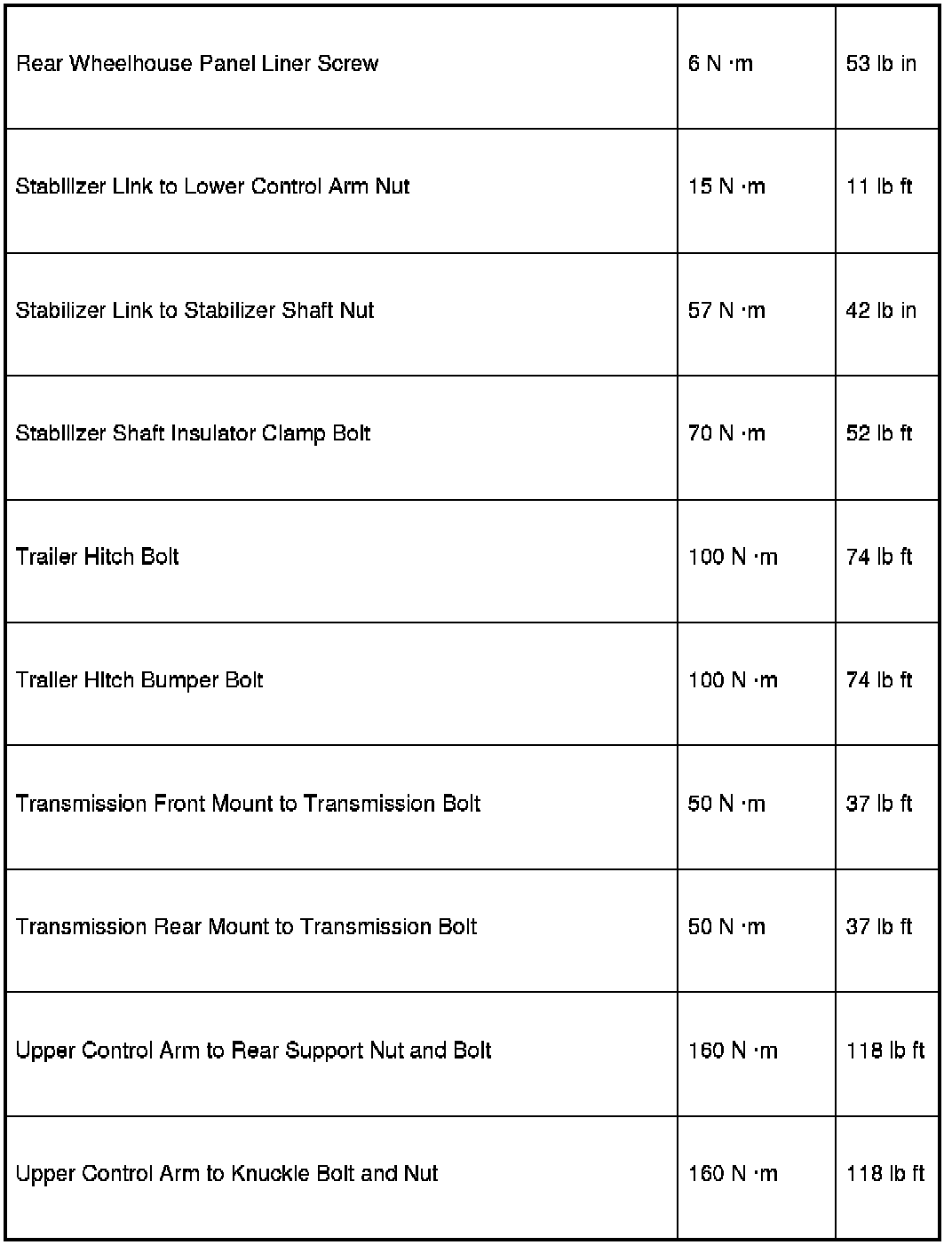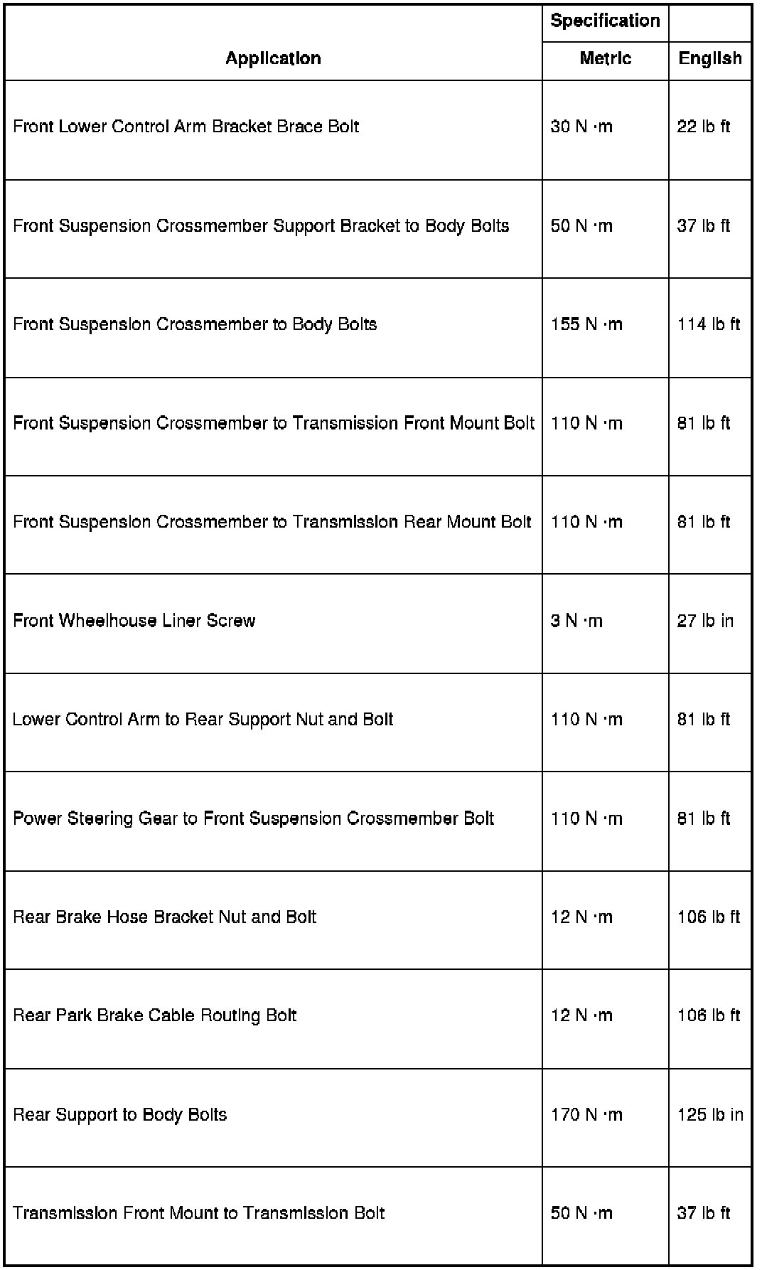 Fastener Tightening Specifications