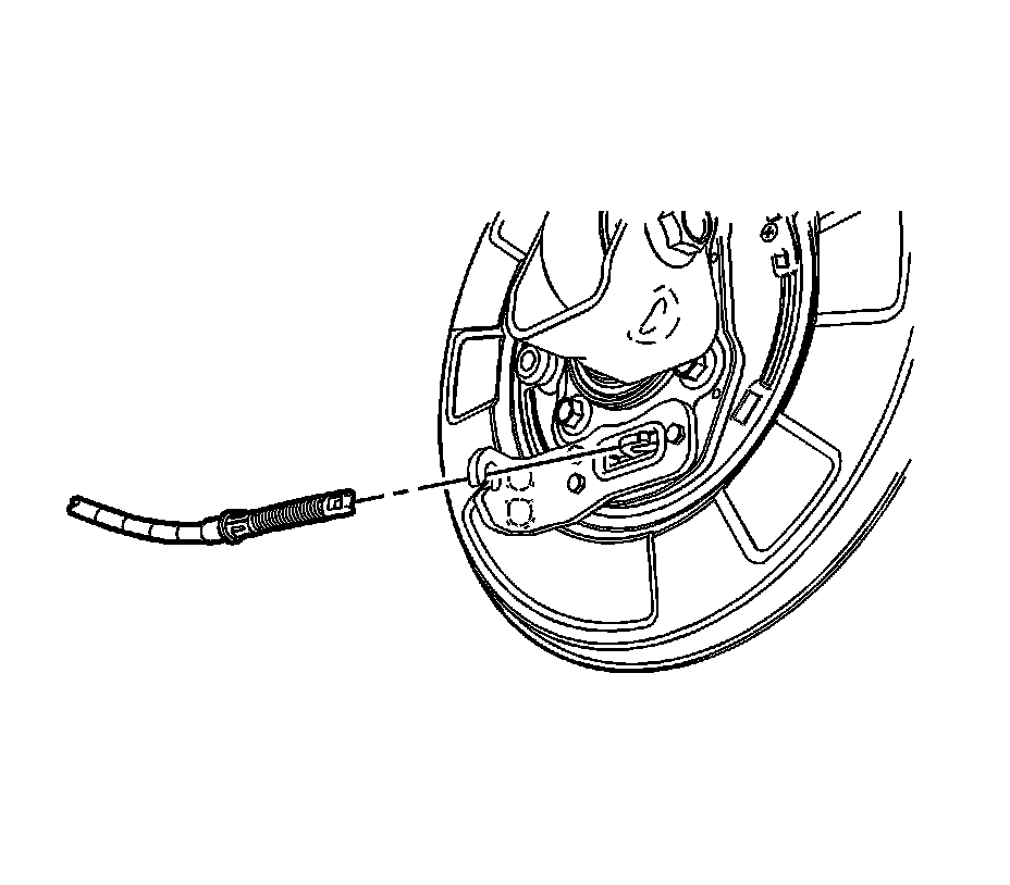 Caution: Support the brake caliper with heavy mechanic wire, or equivalent, whenever it is separated from its mount and the hydraulic flexible brake hose is still connected. Failure to support the caliper in this manner will cause the flexible brake hose to bear the weight of the caliper, which may cause damage to the brake hose and in turn may cause a brake fluid leak.