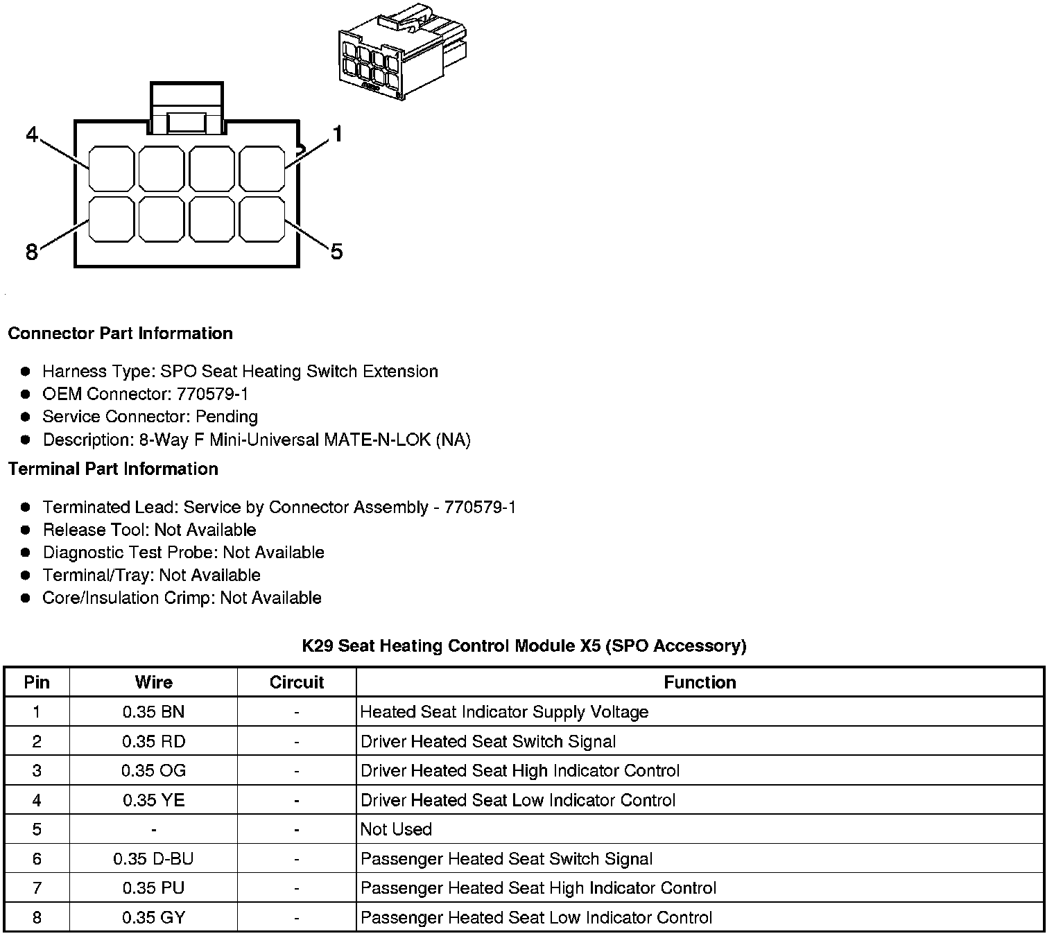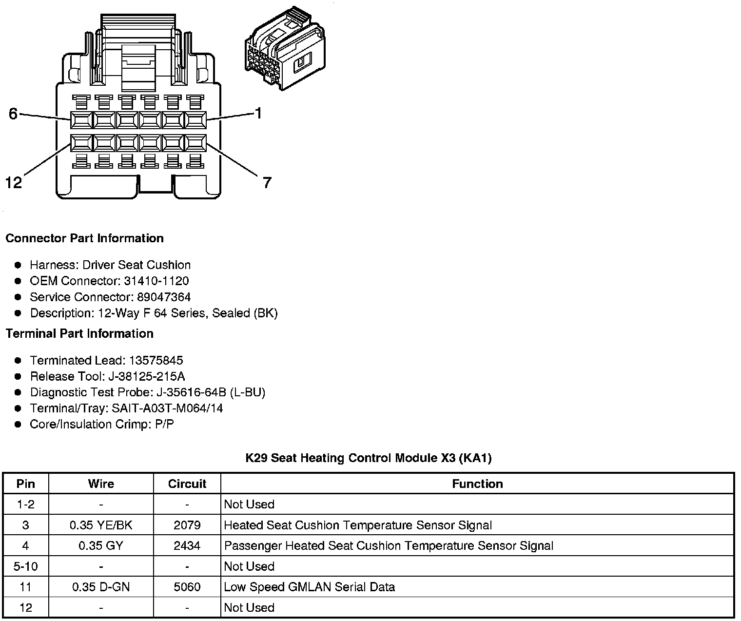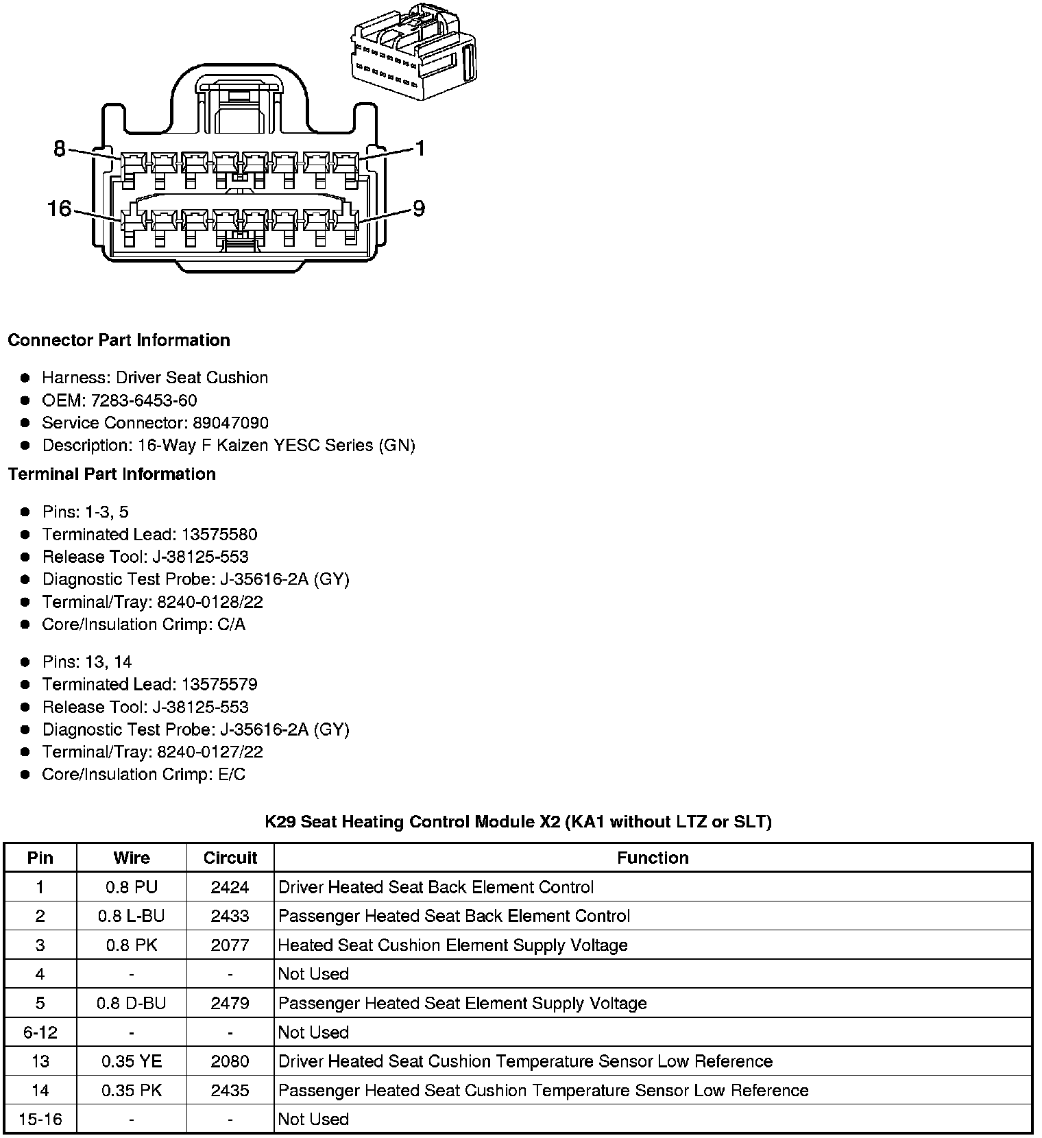 K29 Seat Heating Control Module X3 (KA1 without LTZ or SLT)
