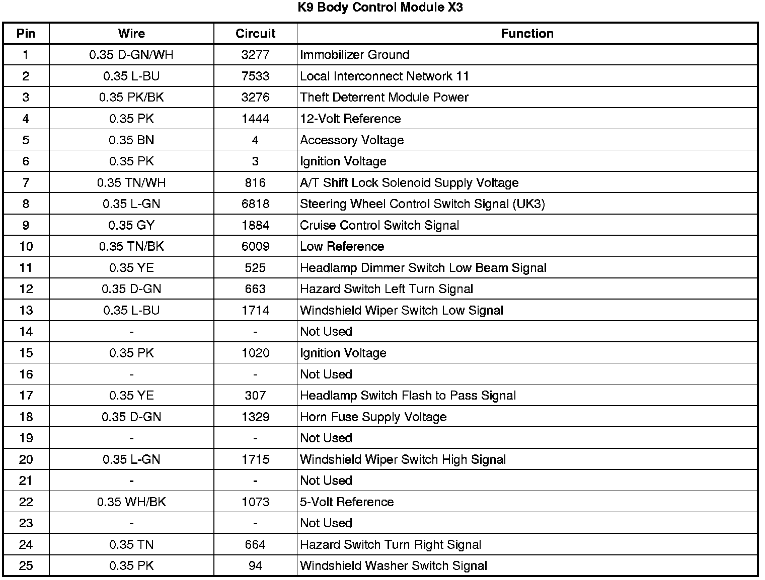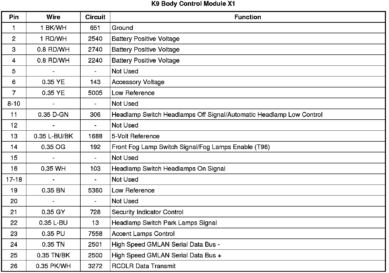 Body Control Module: Diagrams