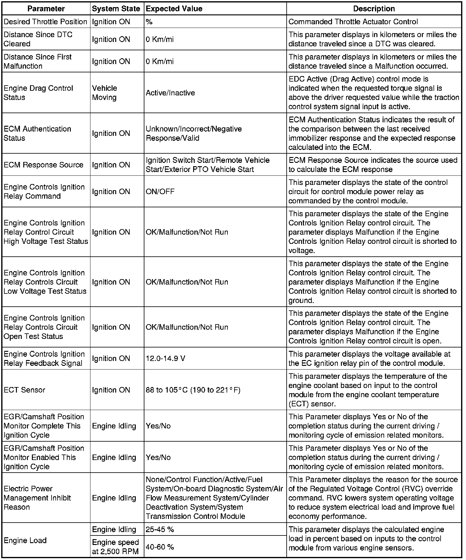 The Engine Control Module Scan Tool Data List contains all engine-related parameters that are available on the scan tool. The list is arranged in alphabetical order. A given parameter may appear in any one of the data lists, and in some cases may appear more than once, or in more than one data list in order to group certain related parameters together.