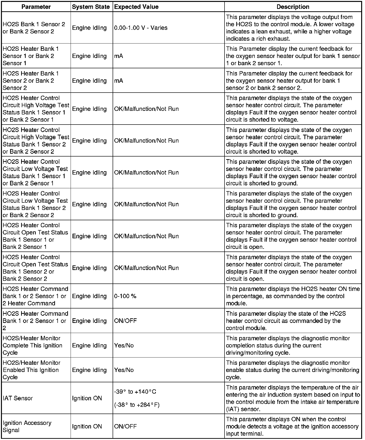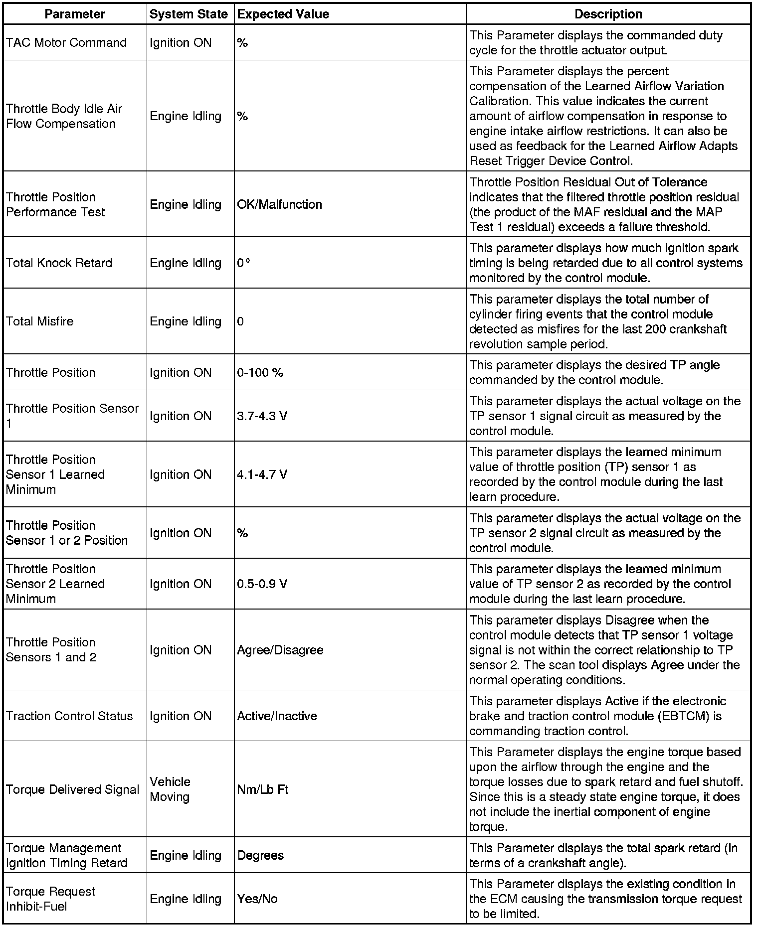 Only the parameters listed below are referenced in this service manual for use in diagnosis.