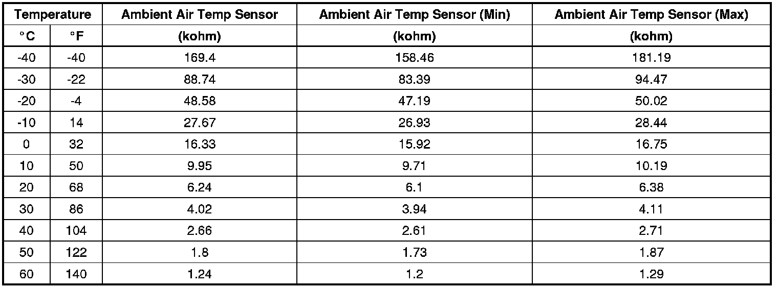 Ambient Air Temperature Sensor Resistance