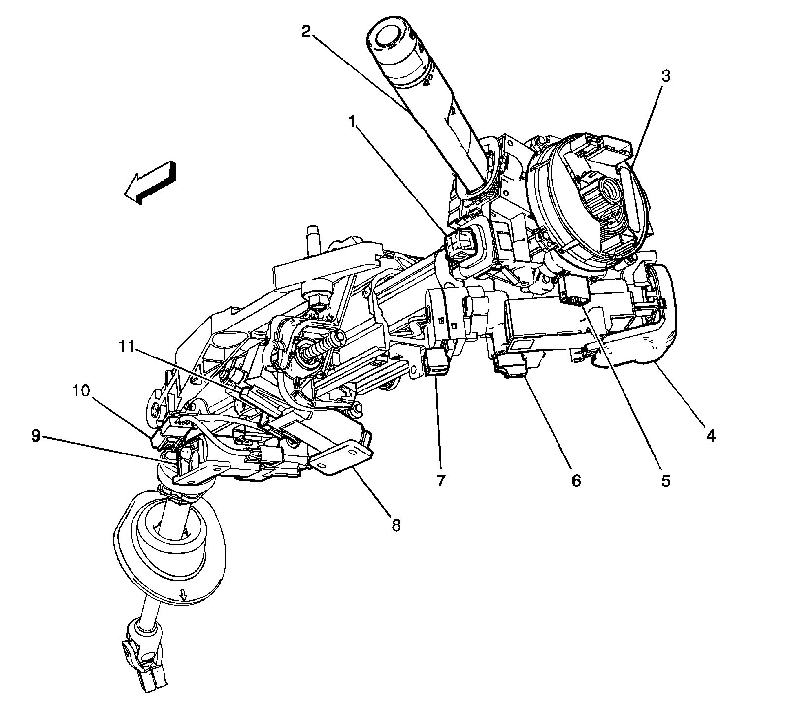 Home >> GMC >> 2012 >> Acadia FWD V6-3.6L >> Repair and Diagnosis >> Locations >> Component Locations >> Instrument Panel/Center Console Component Views >> Steering Column Components