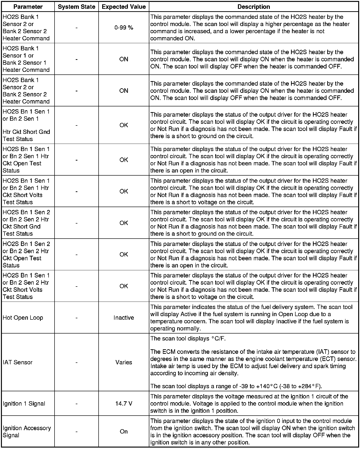 The Engine Scan Tool Data List represents values that would be seen on a normally running engine under the conditions listed below.