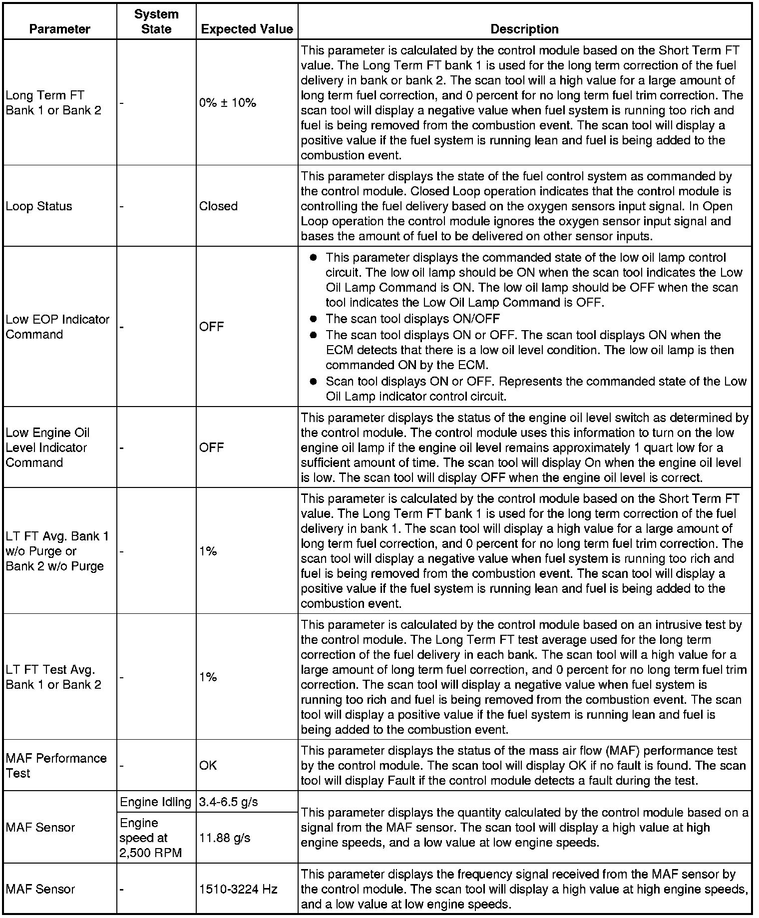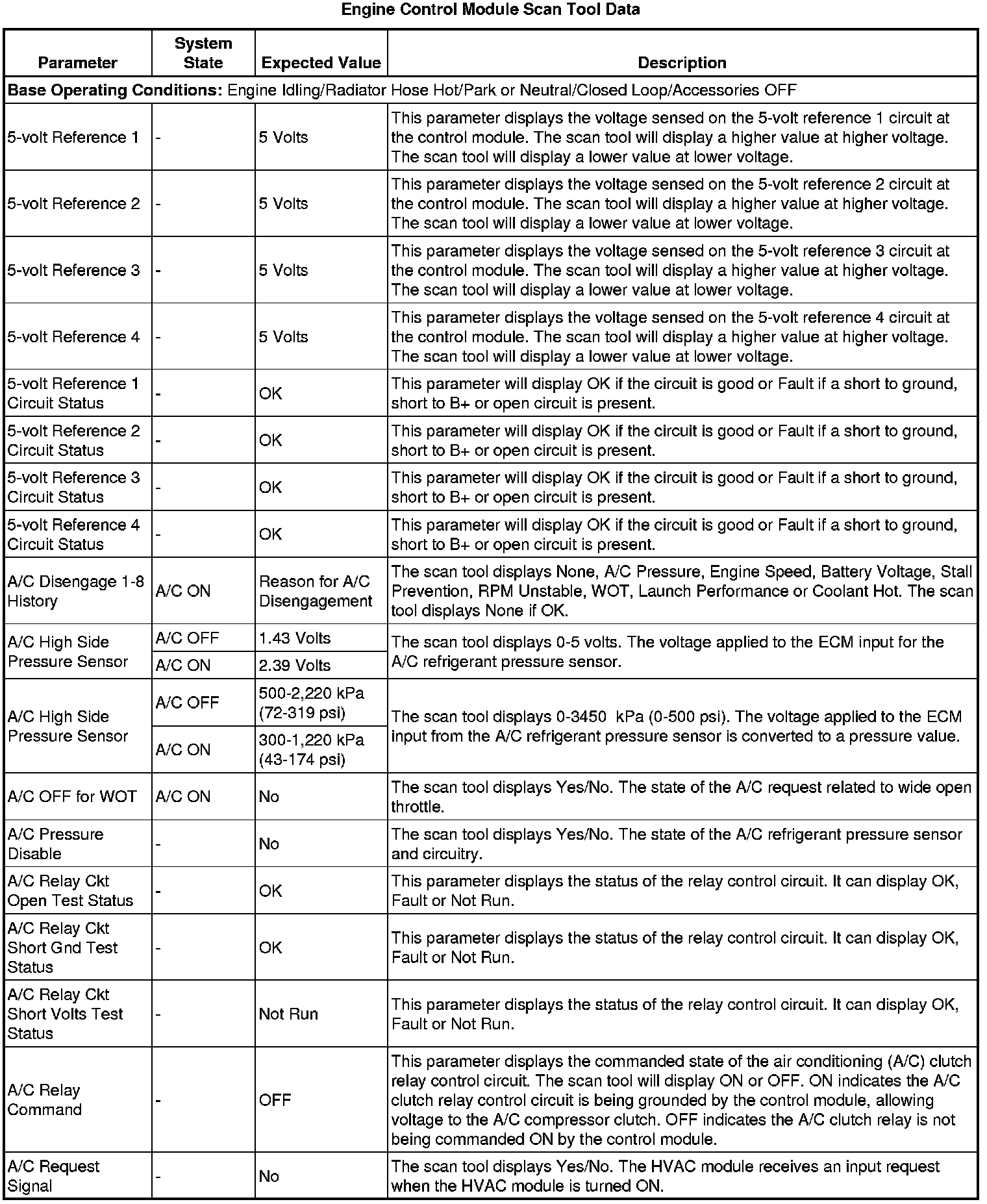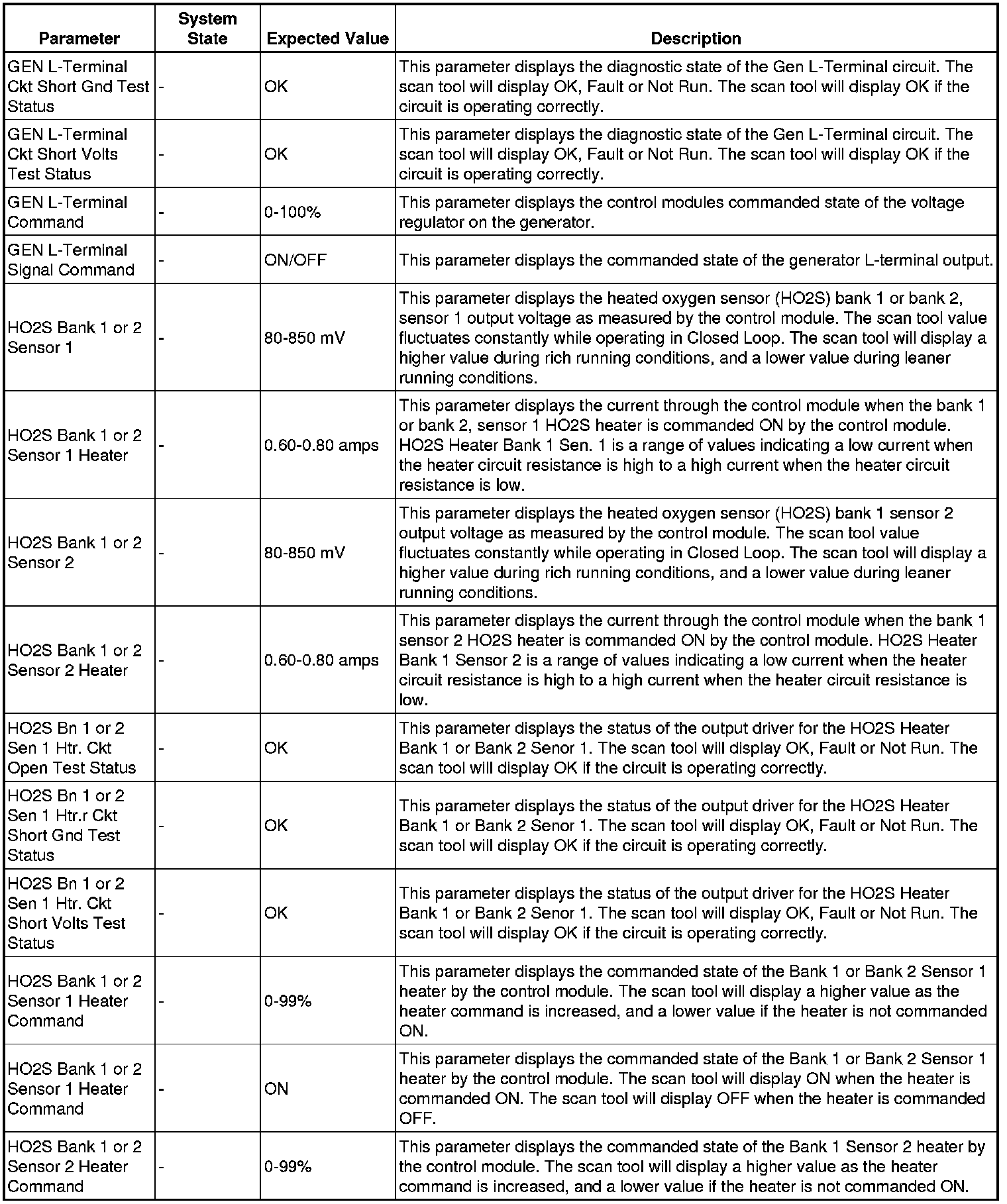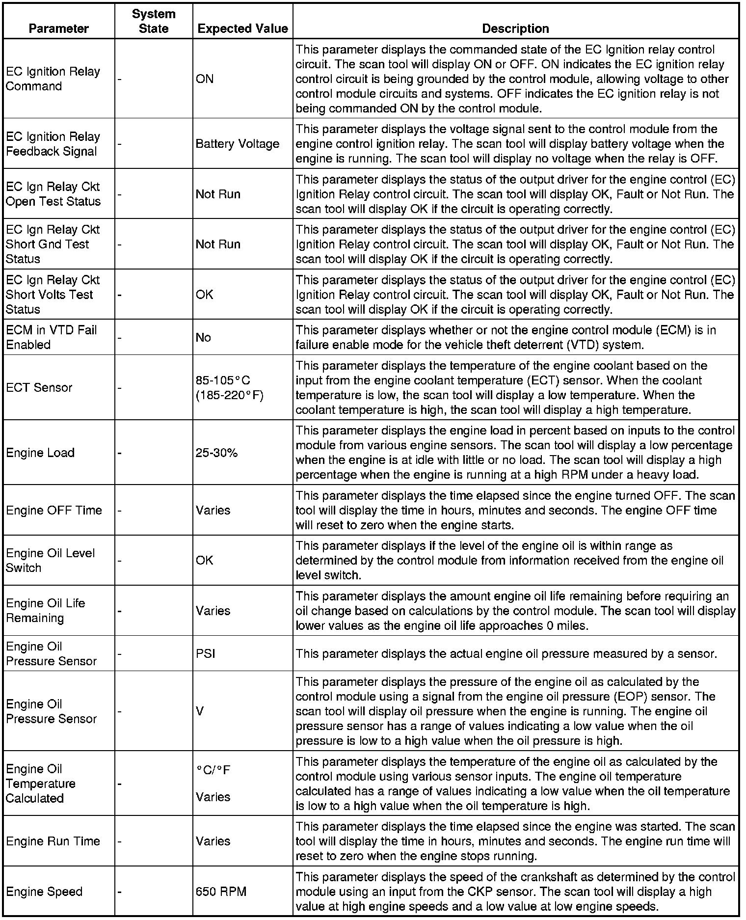 The Engine Control Module Scan Tool Data List contains all engine-related parameters that are available on the scan tool. The list is arranged in alphabetical order. A given parameter may appear in any one of the data lists, and in some cases may appear more than once, or in more than one data list in order to group certain related parameters together.