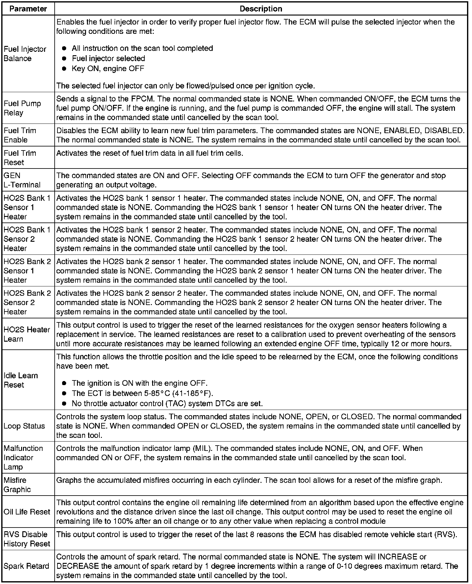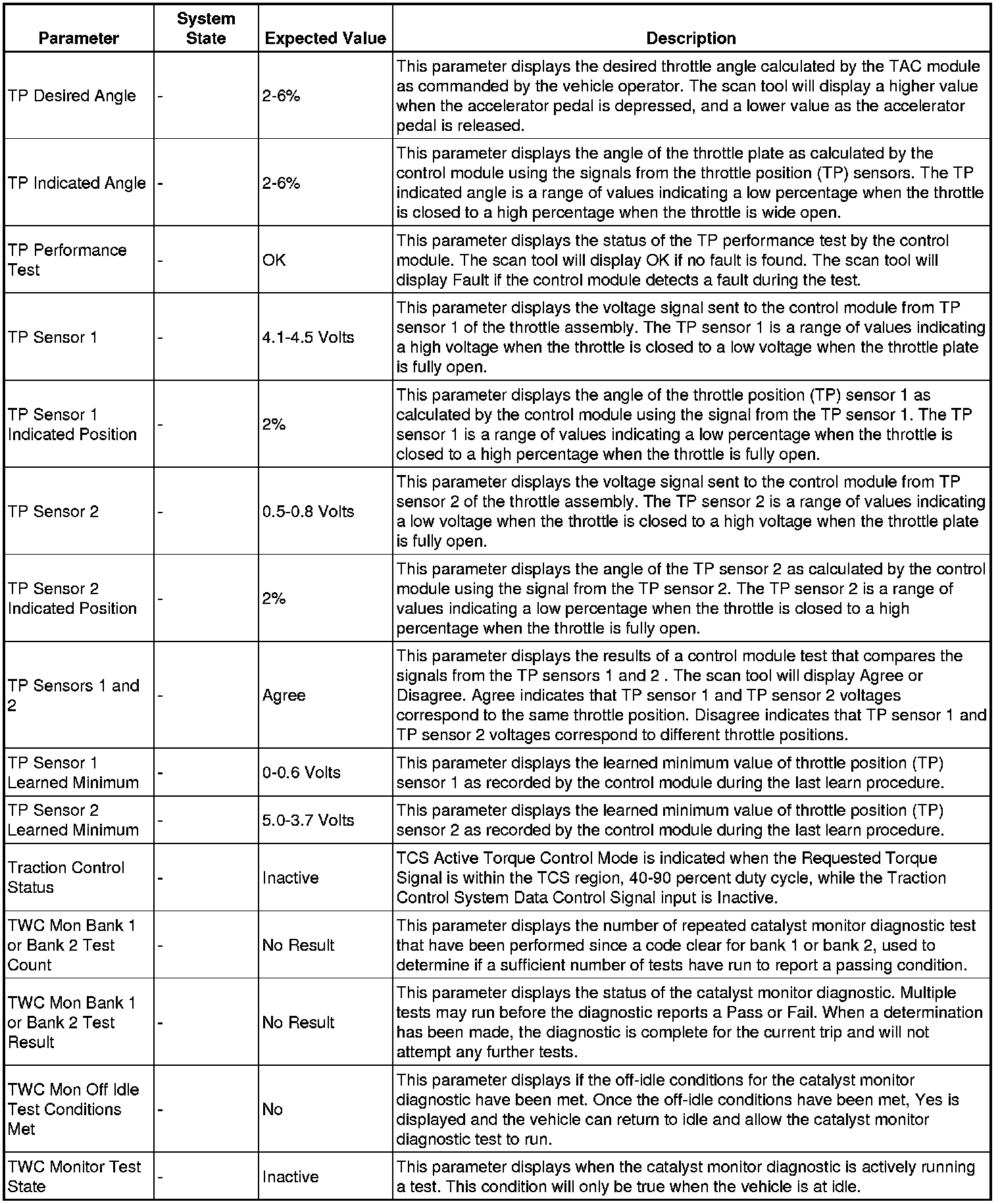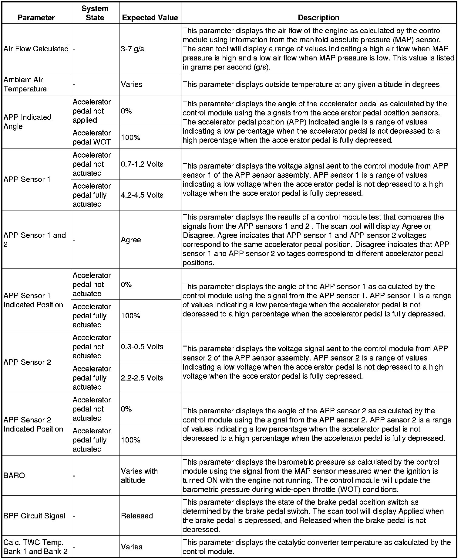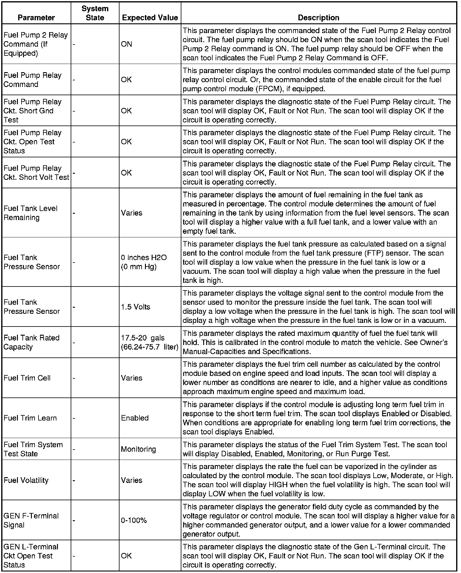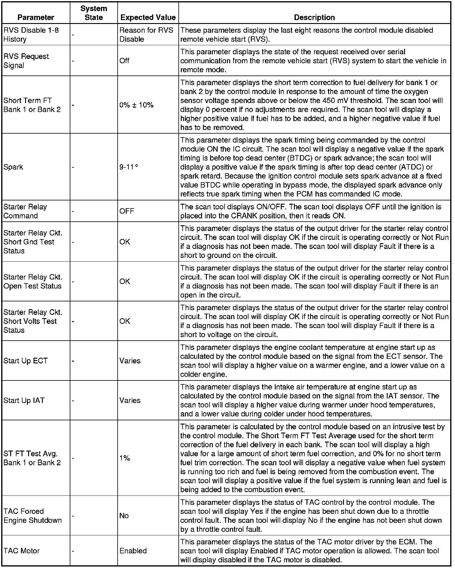 The Engine Control Module Scan Tool Data List contains all engine-related parameters that are available on the scan tool. The list is arranged in alphabetical order. A given parameter may appear in any one of the data lists, and in some cases may appear more than once, or in more than one data list in order to group certain related parameters together.
