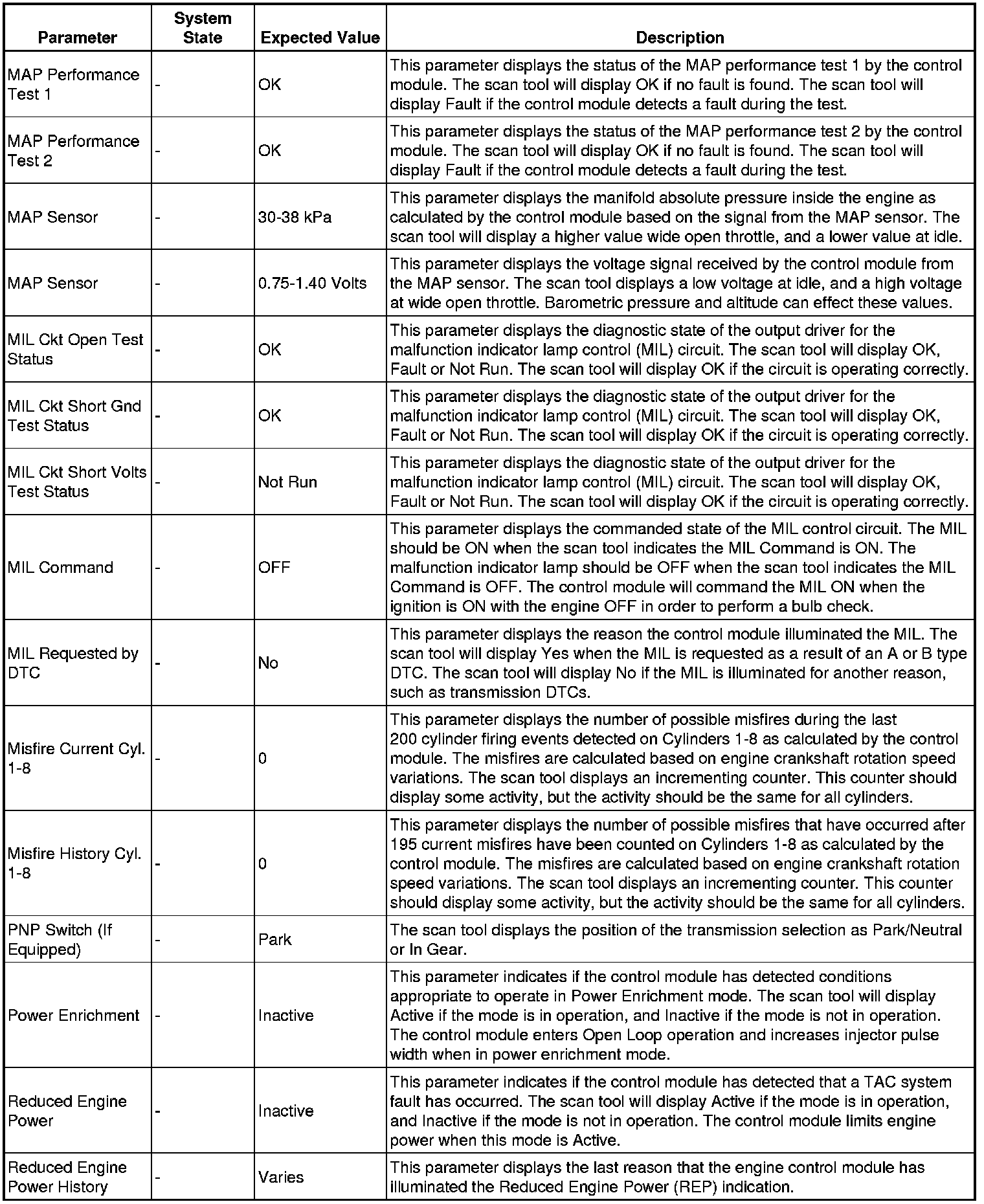 The scan tool values from a properly running engine may be used for comparison with the engine you are diagnosing. The engine scan tool data list represents values that would be seen on a normally running engine.