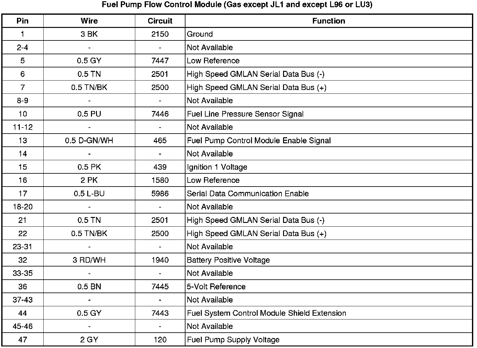 Fuel Pump Flow Control Module (Gas except JL1 and except L96 or LU3)