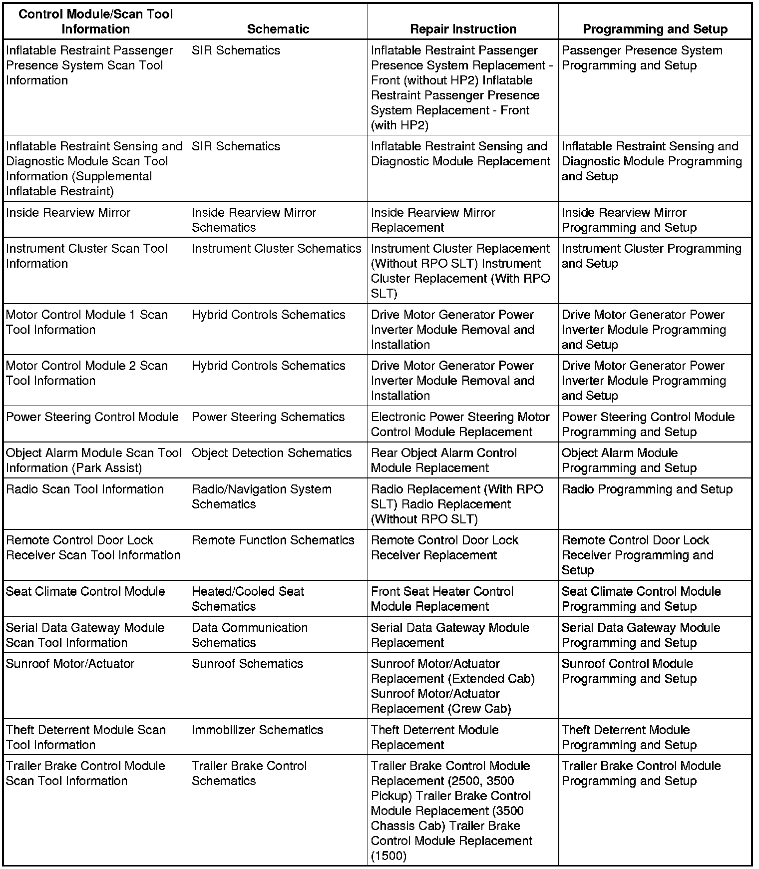 Home >> GMC >> 2012 >> Sierra Denali AWD V8-6.2L >> Repair and Diagnosis >> Testing and Inspection >> Programming and Relearning >> Control Module References