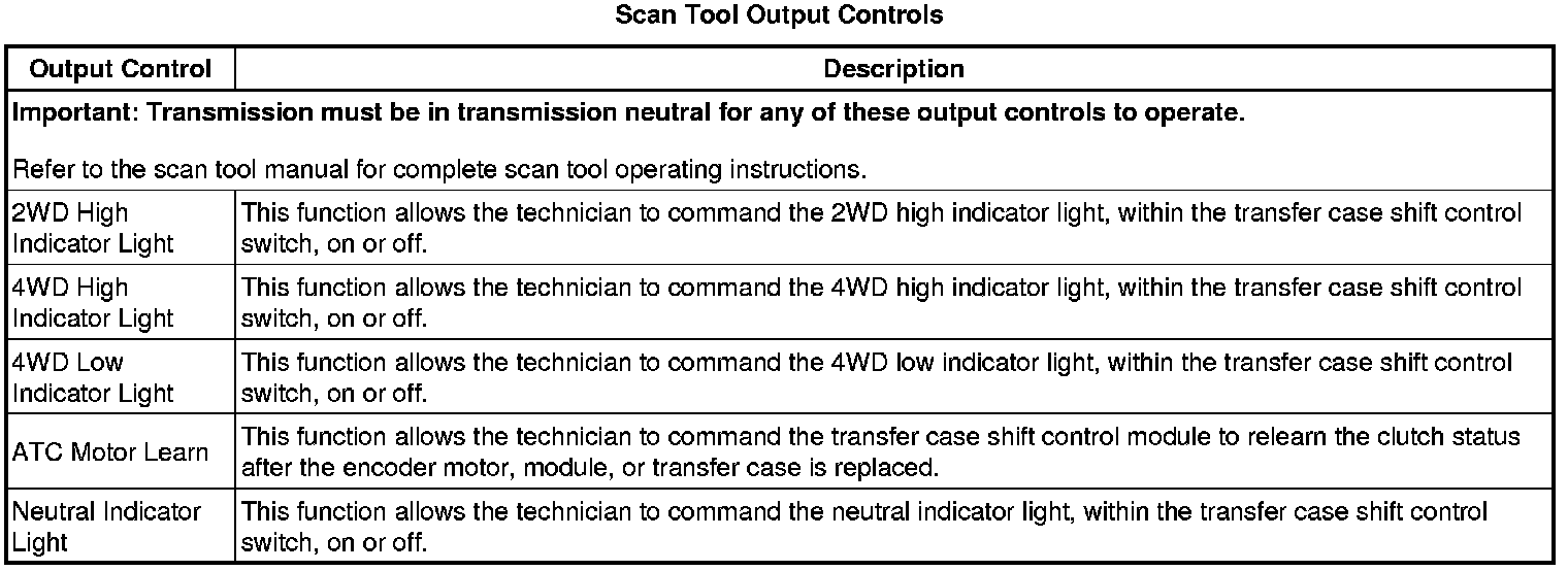 Transfer Case Shift Control Module Scan Tool Information (MP 1625/1626-NQF)