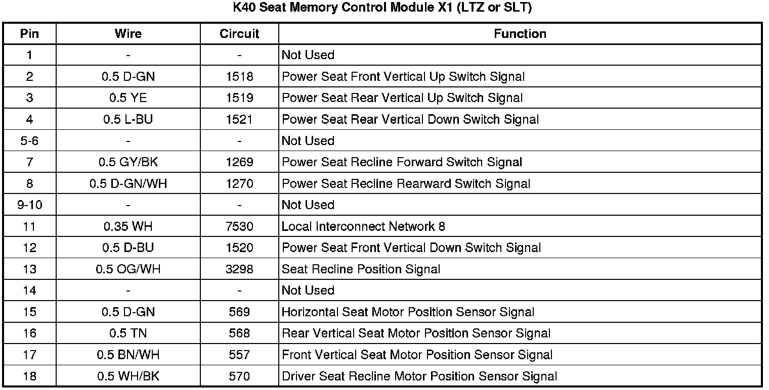 K40 Seat Memory Control Module X1 (LTZ or SLT)