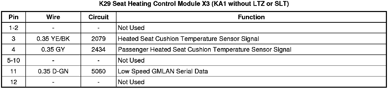 K29 Seat Heating Control Module X3 (KA1 without LTZ or SLT)
