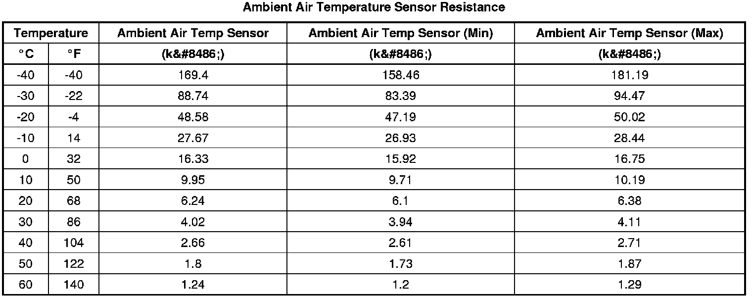 Ambient Air Temperature Sensor Resistance