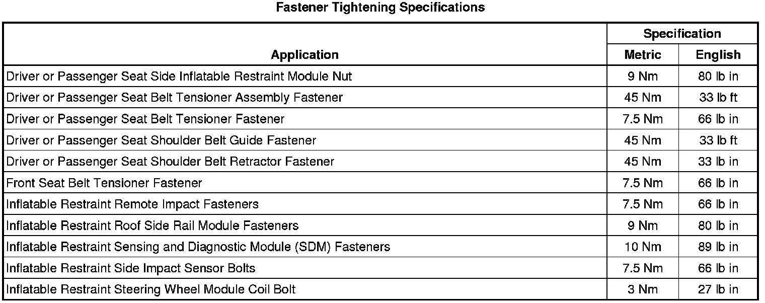 Fastener Tightening Specifications
