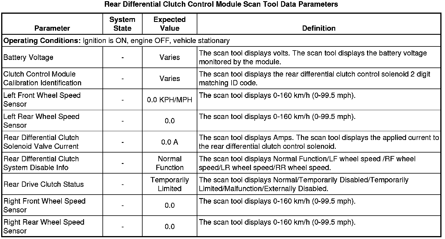 Rear Differential Clutch Control Module Scan Tool Information