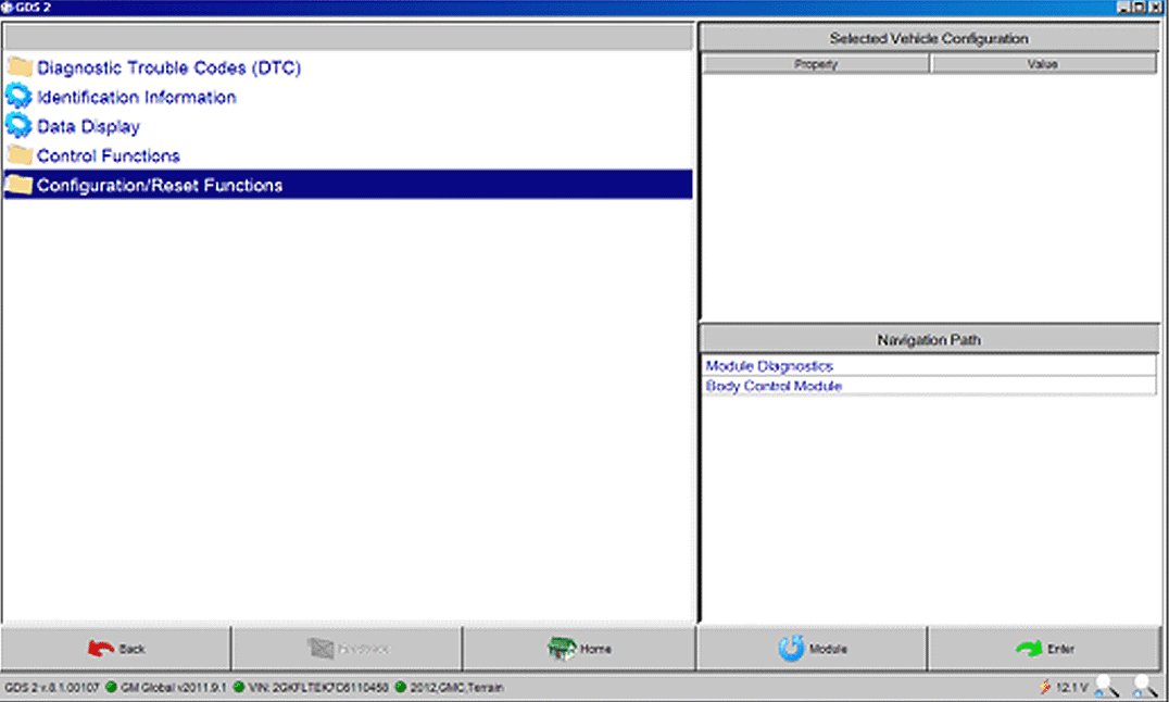 1. Select Configuration/Reset Functions from the GDS2 screen.